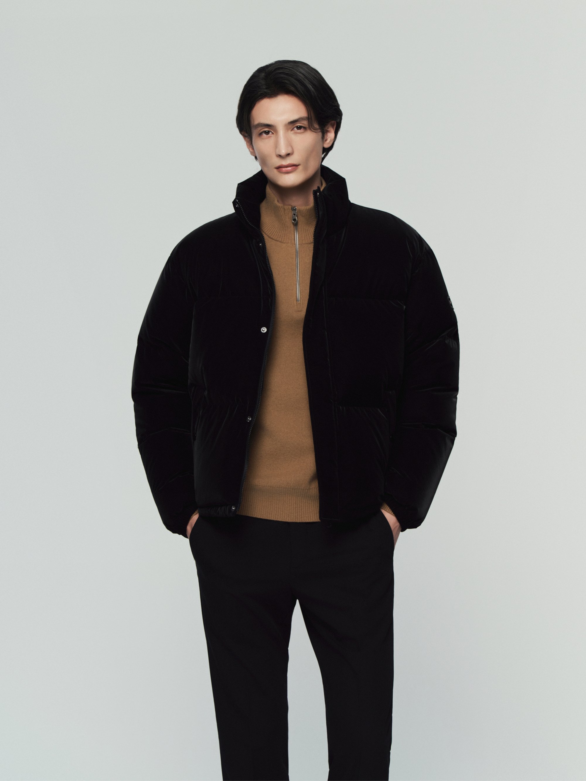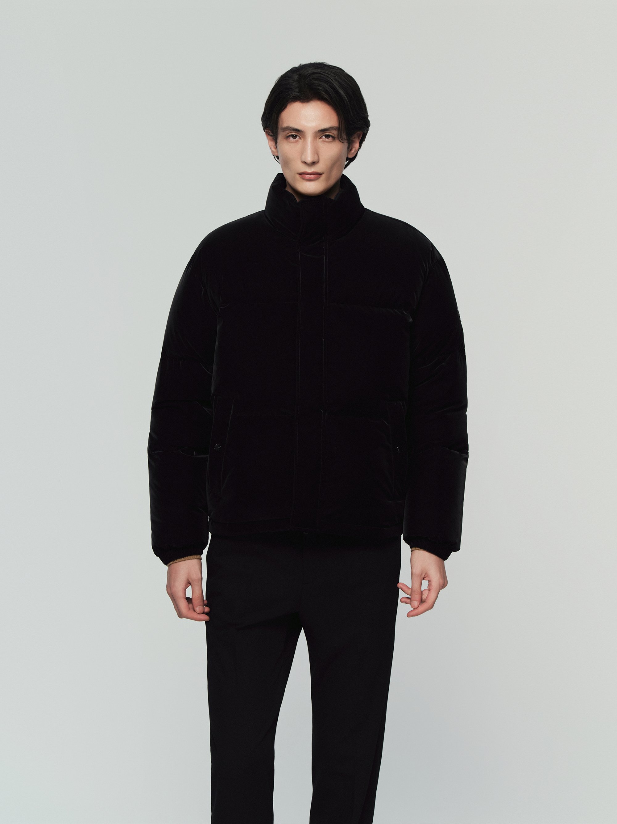 - 듀베티카의 시그니쳐 소재인 벨벳 소재를 사용한 NEW 남성 숏다운 자켓.