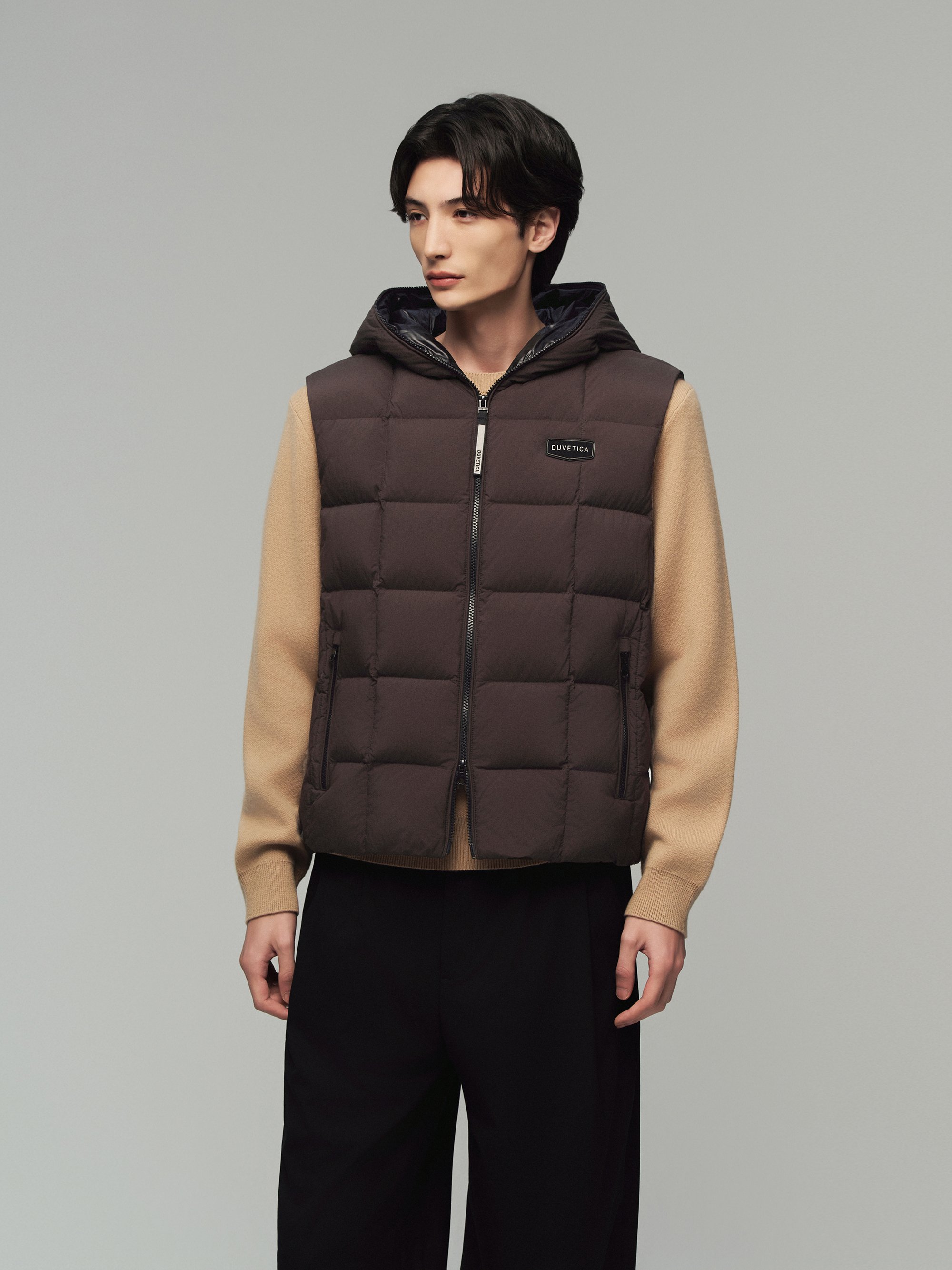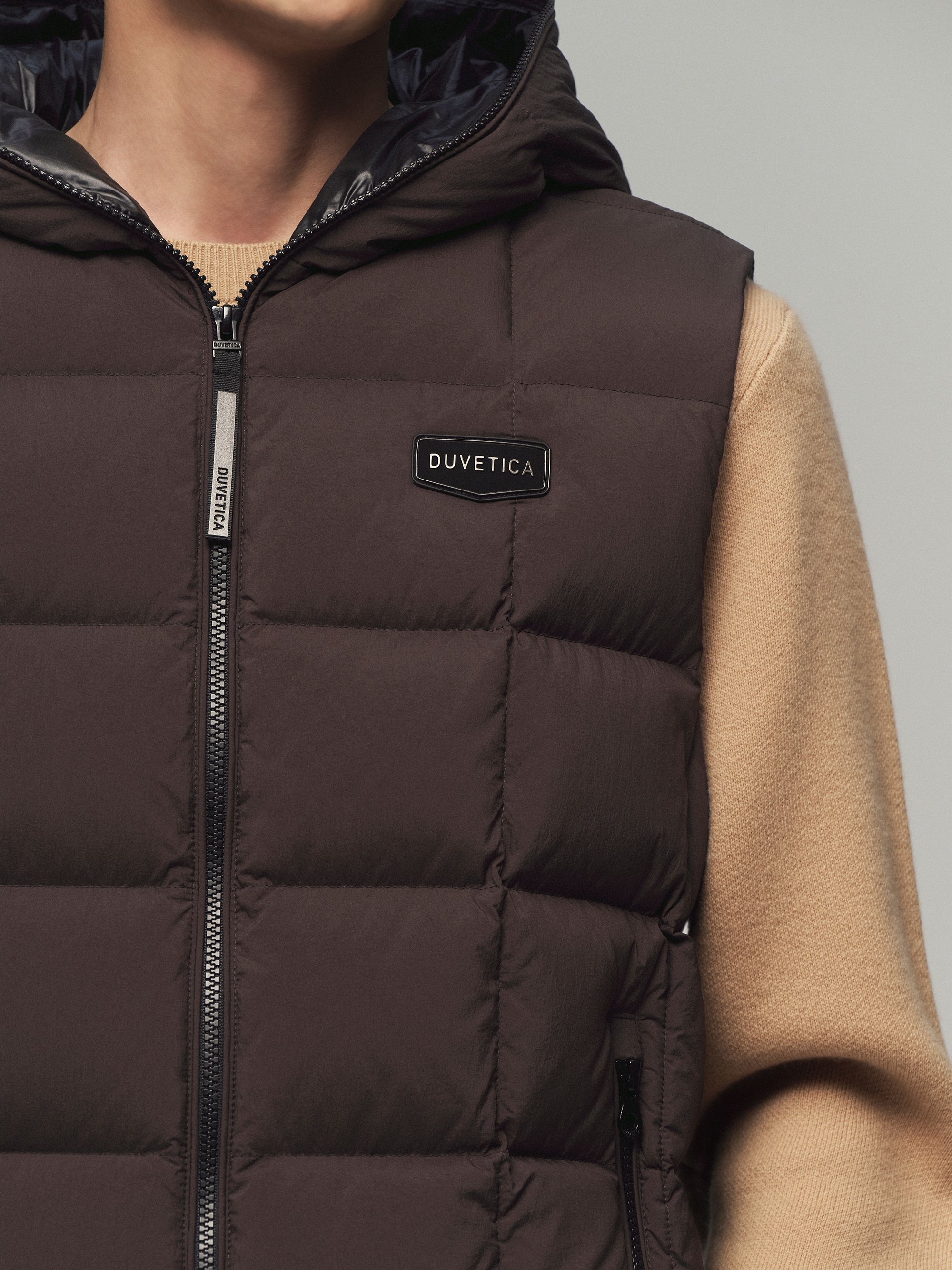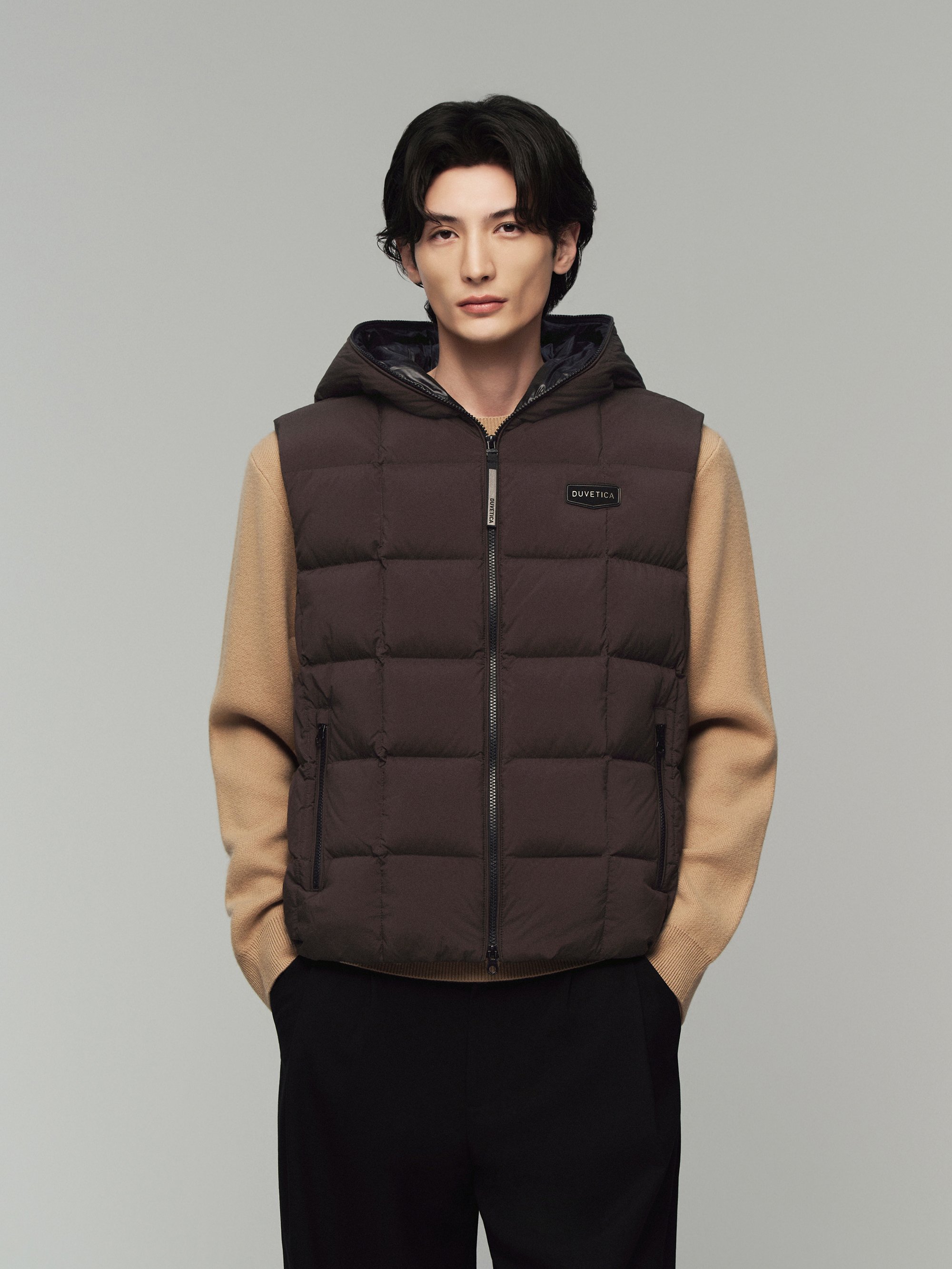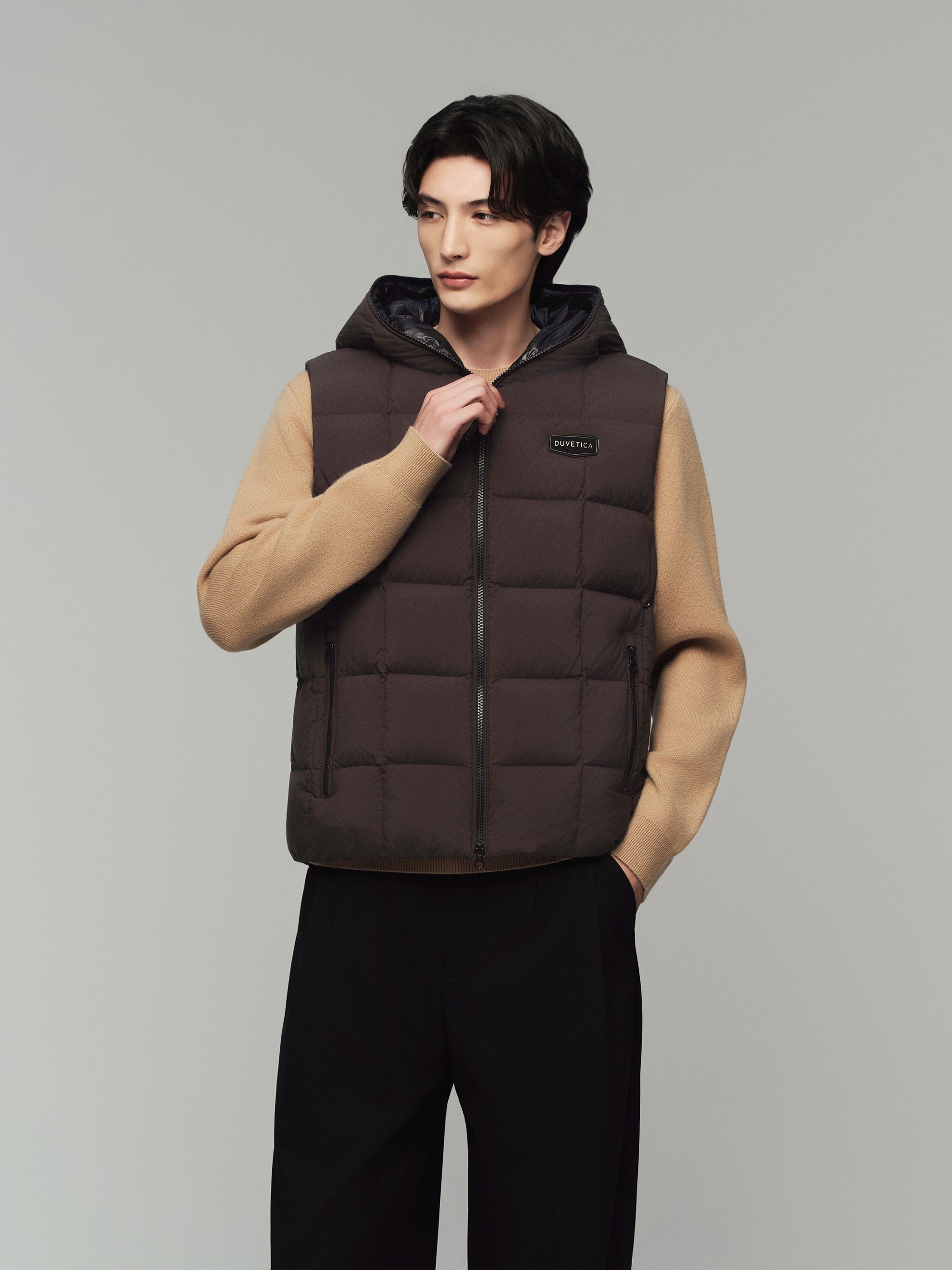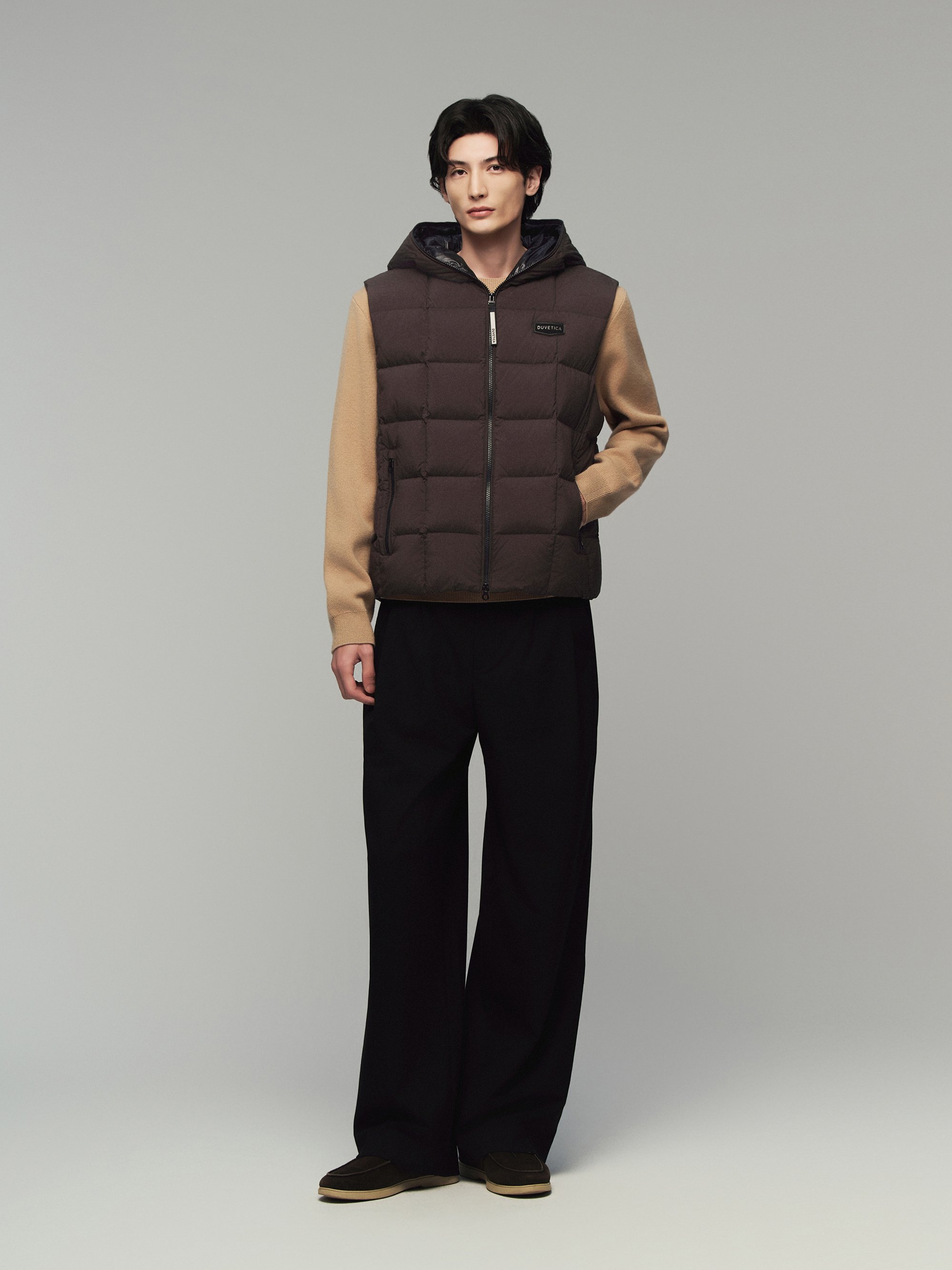 - 자연스러운 표면감이 특징인 나일론 소재를 사용한 남성 다운베스트.