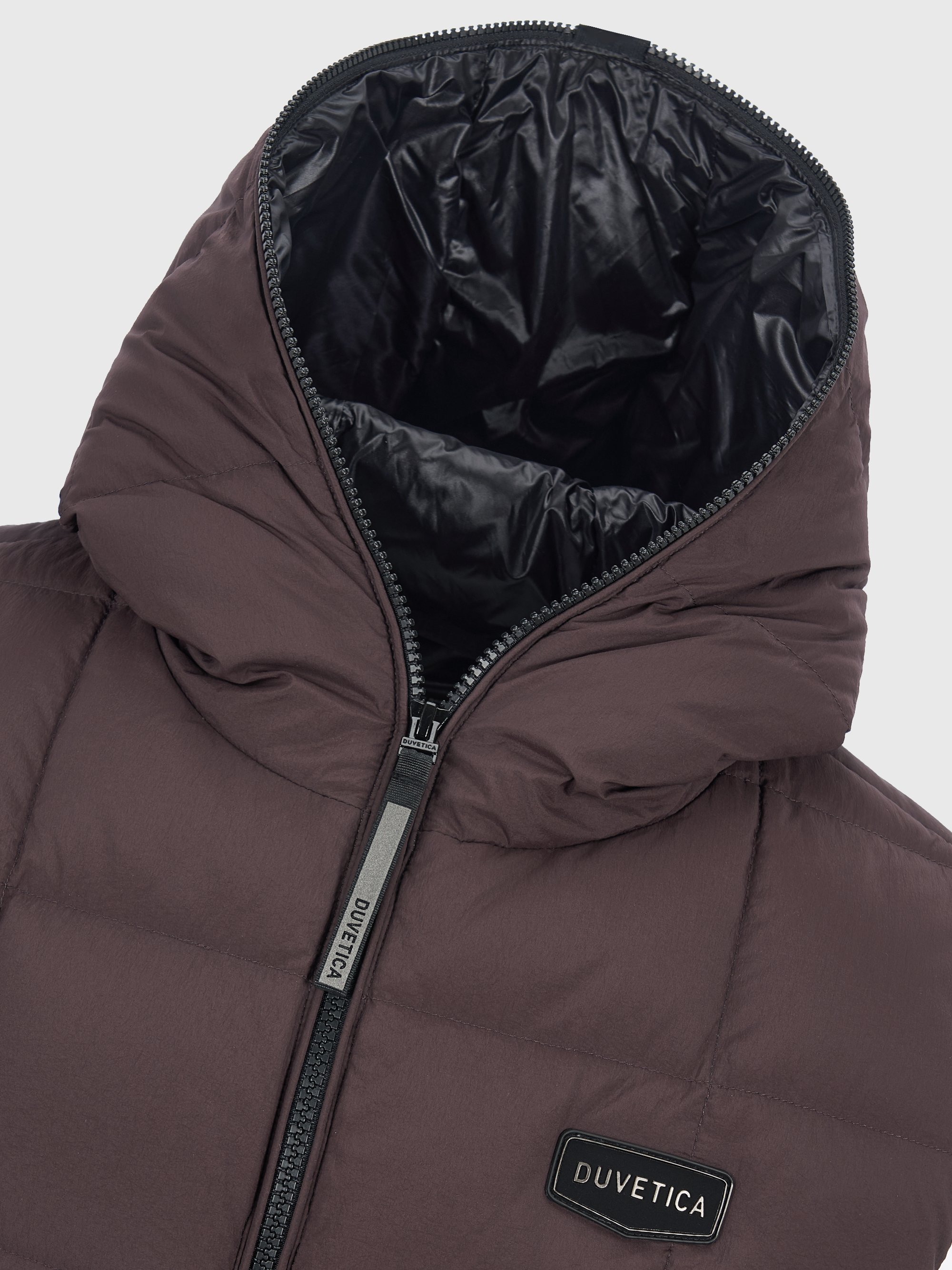 - 듀베티카의 시그니쳐인 풀집 디테일과 후드 안감의 유광 소재를 매칭한것이 디자인 포인트