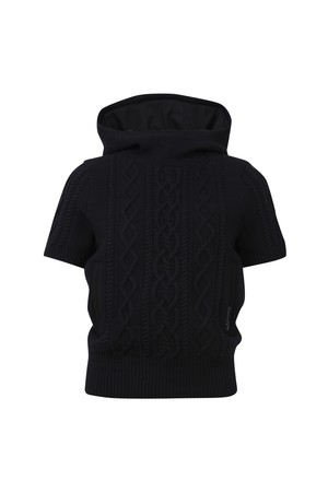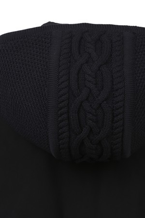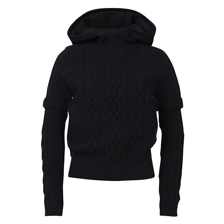 - 케이블 조직의 하이브리드 후디 풀오버 스웨터