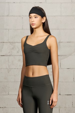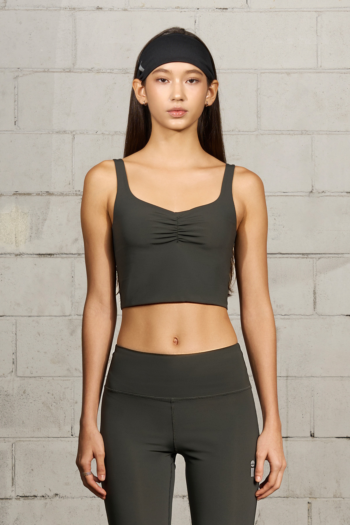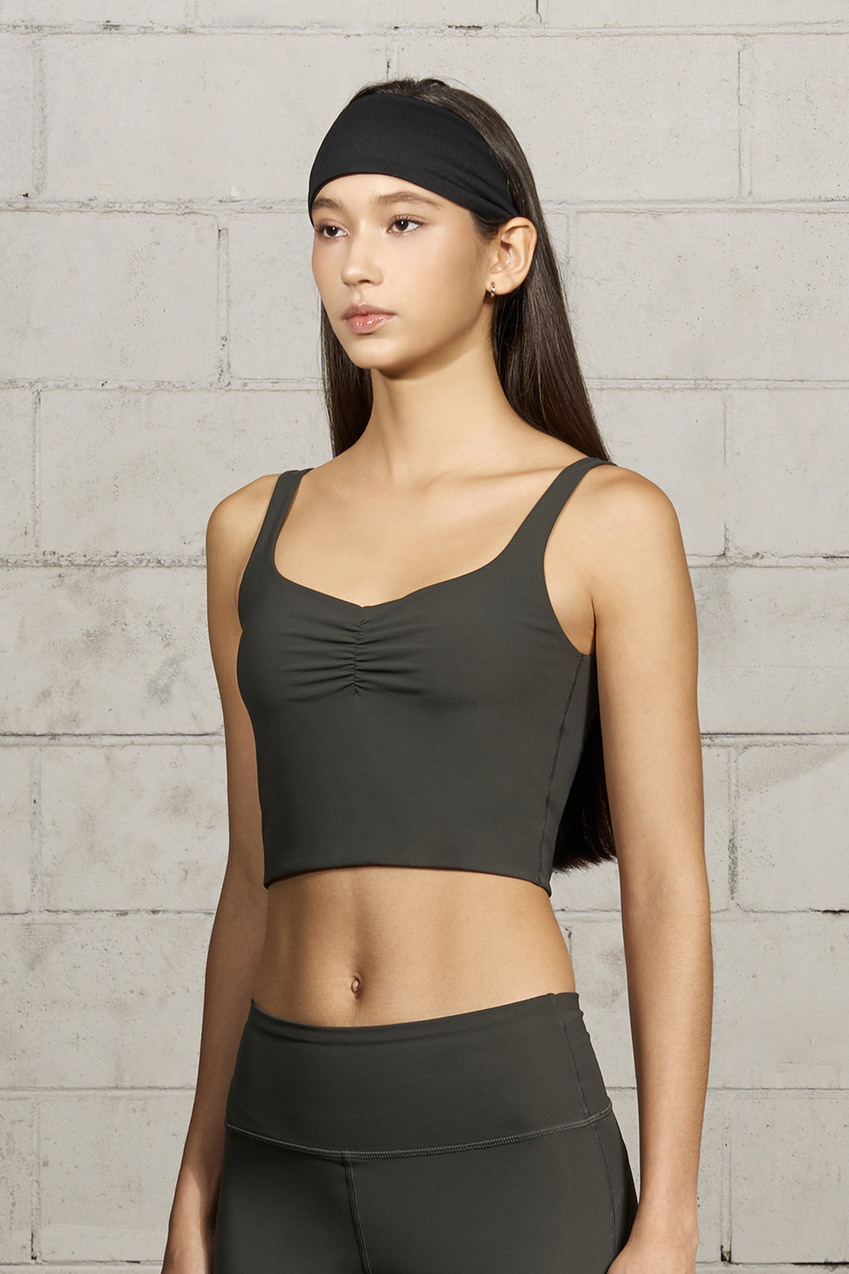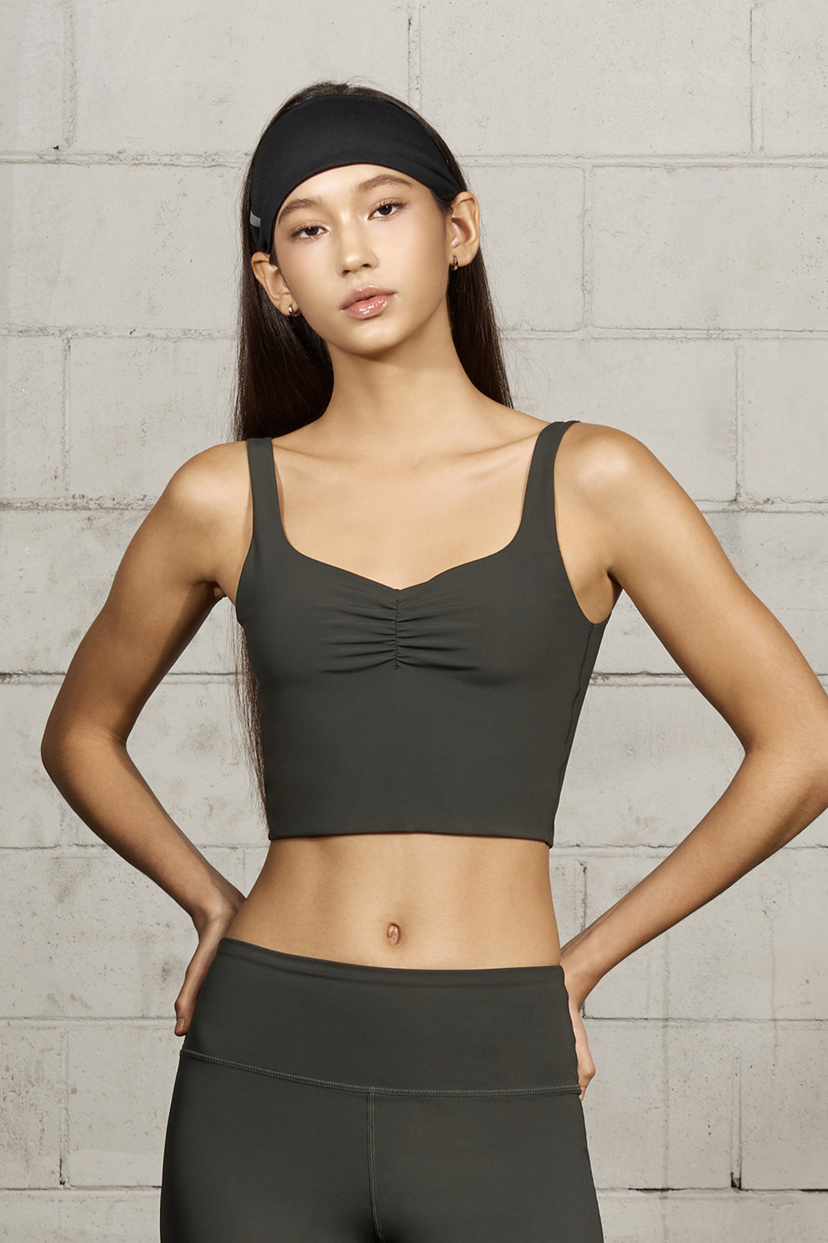 앞 가슴 셔링 포인트로 여성스러움을 더한 스포츠 탱크탑브라 입니다.