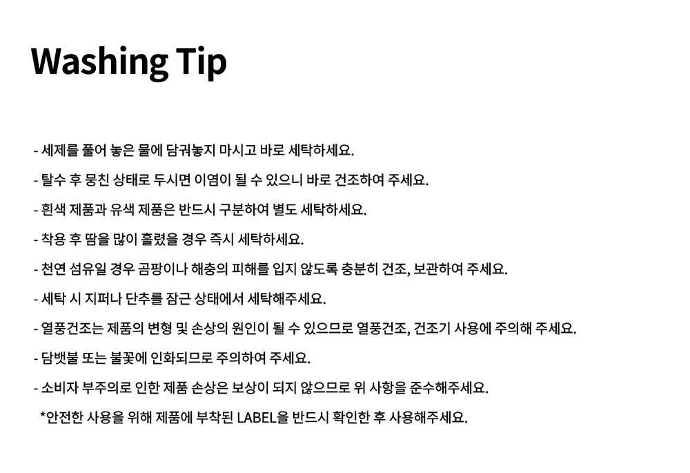 세탁방법 및 취급시 주의사항상세페이지 참조