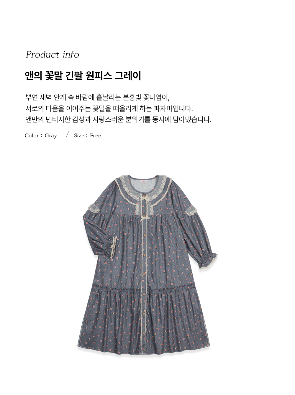 앤의 꽃말 긴팔 원피스 그레이 (30수)