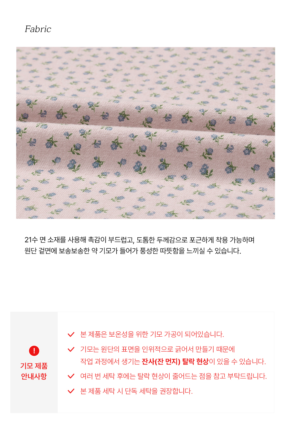 | 세탁방법 및 취급시 주의사항 | 손세탁 권장 |