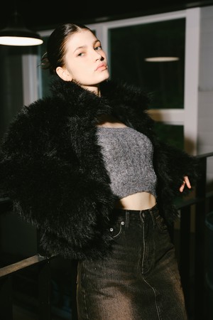 헤어리 퍼 자켓 (Black)