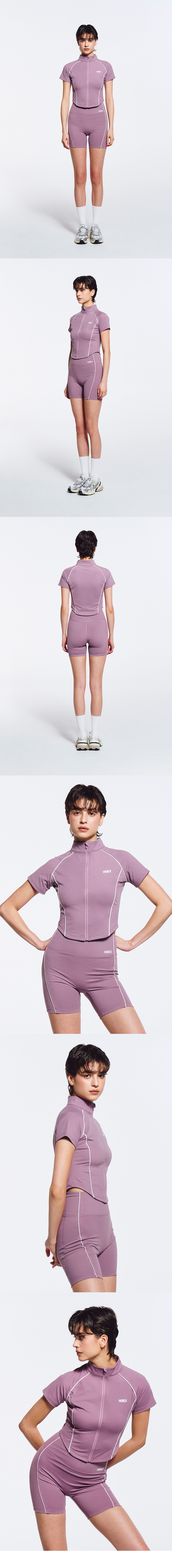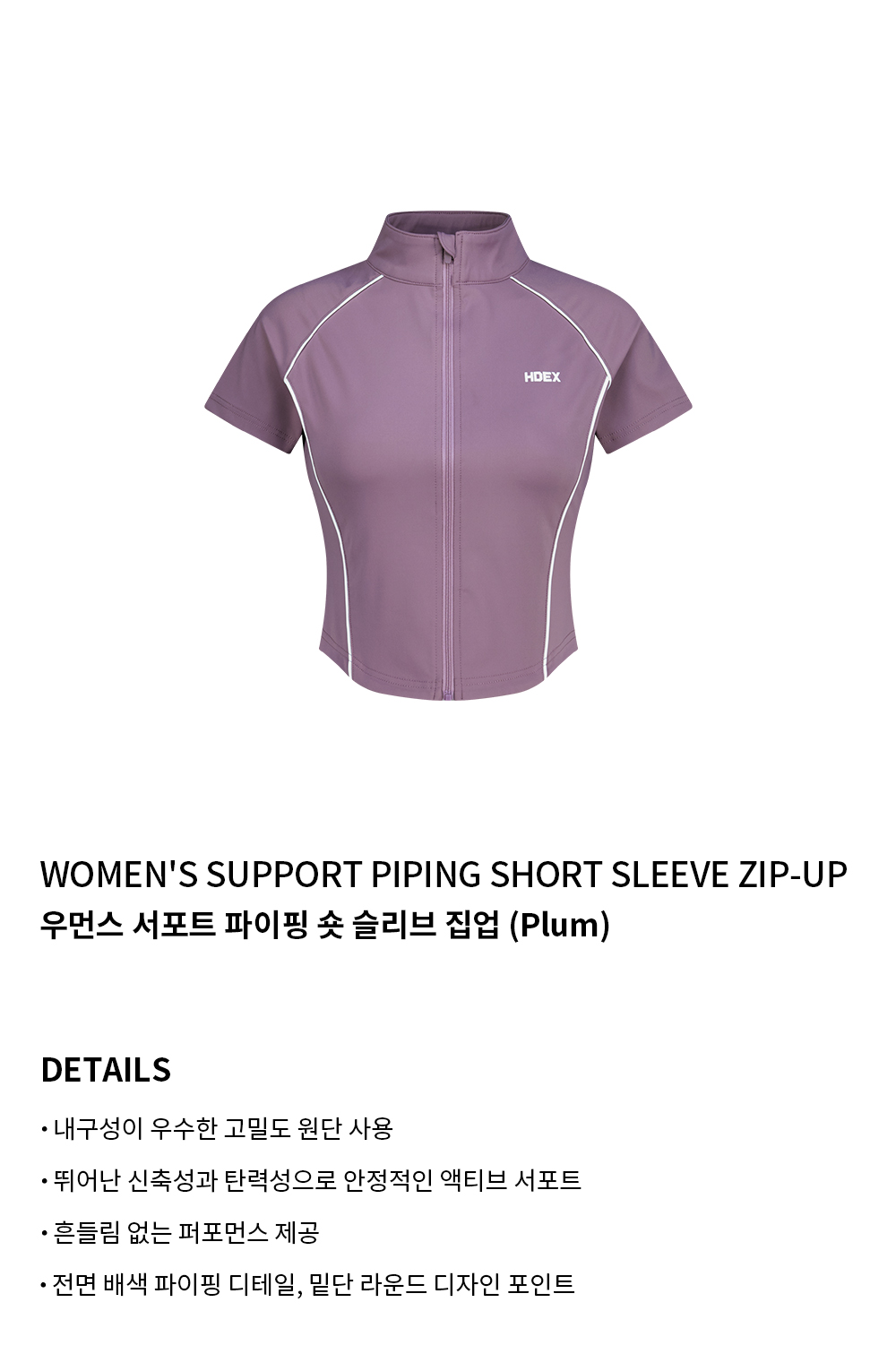 우먼스 서포트 파이핑 숏 슬리브 집업 (Plum)