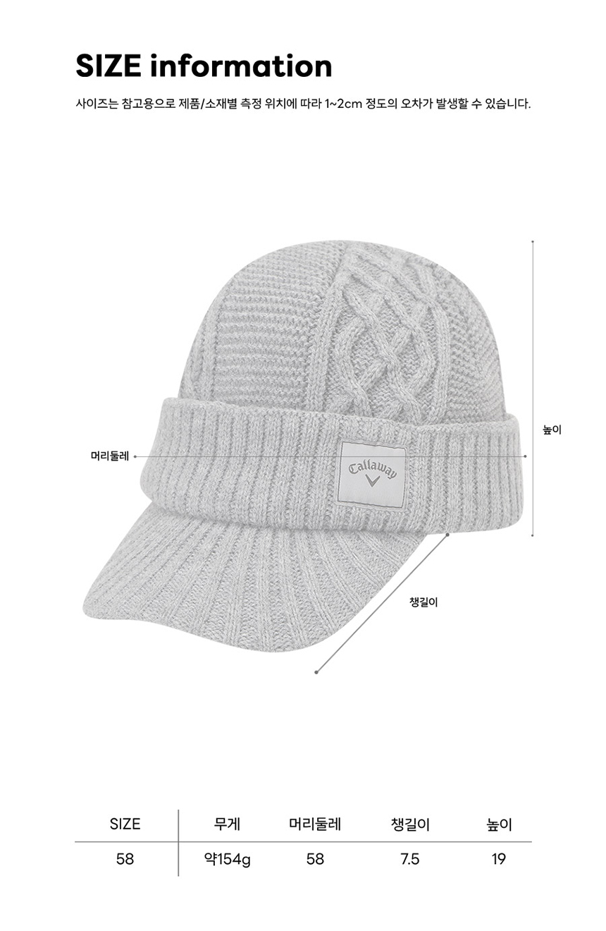 | 품명 및 모델명 | 캘러웨이 2025 브림 니트 비니 방한 겨울 골프모자 그레이 |