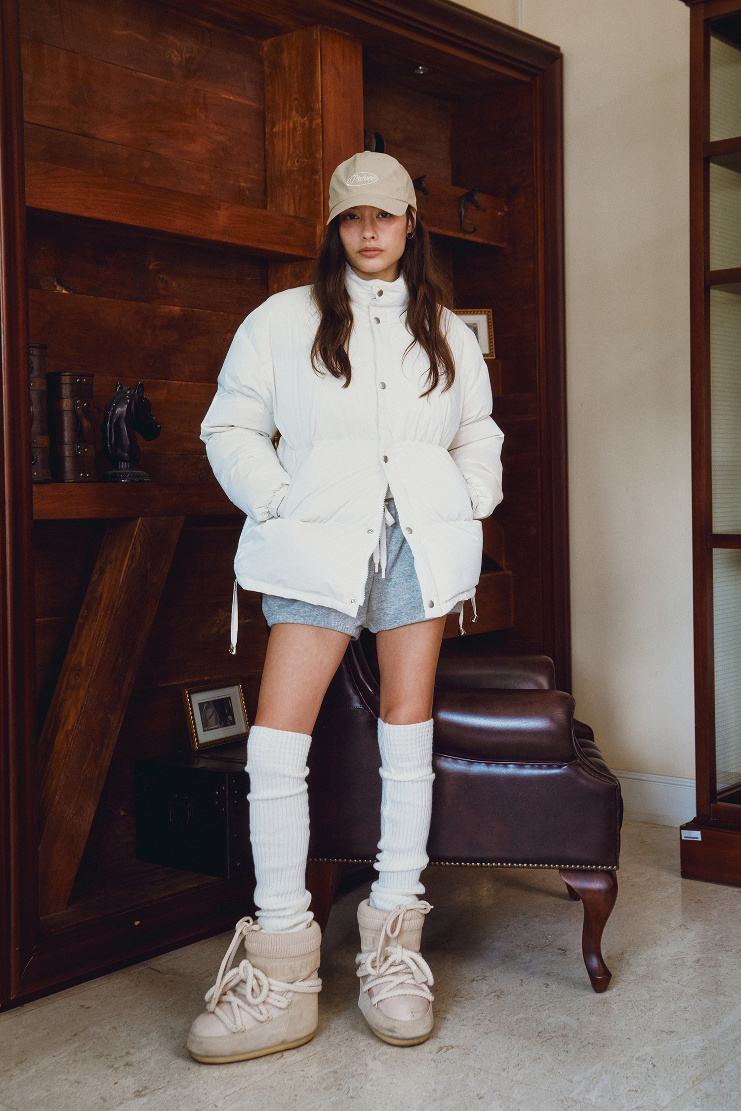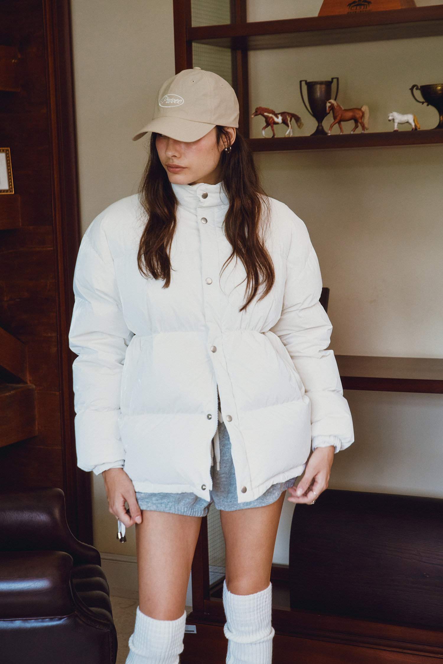 밑단 제원단 스트링으로 조임 연출이 가능하여 다양하게 스타일링 하기 좋은 아이템