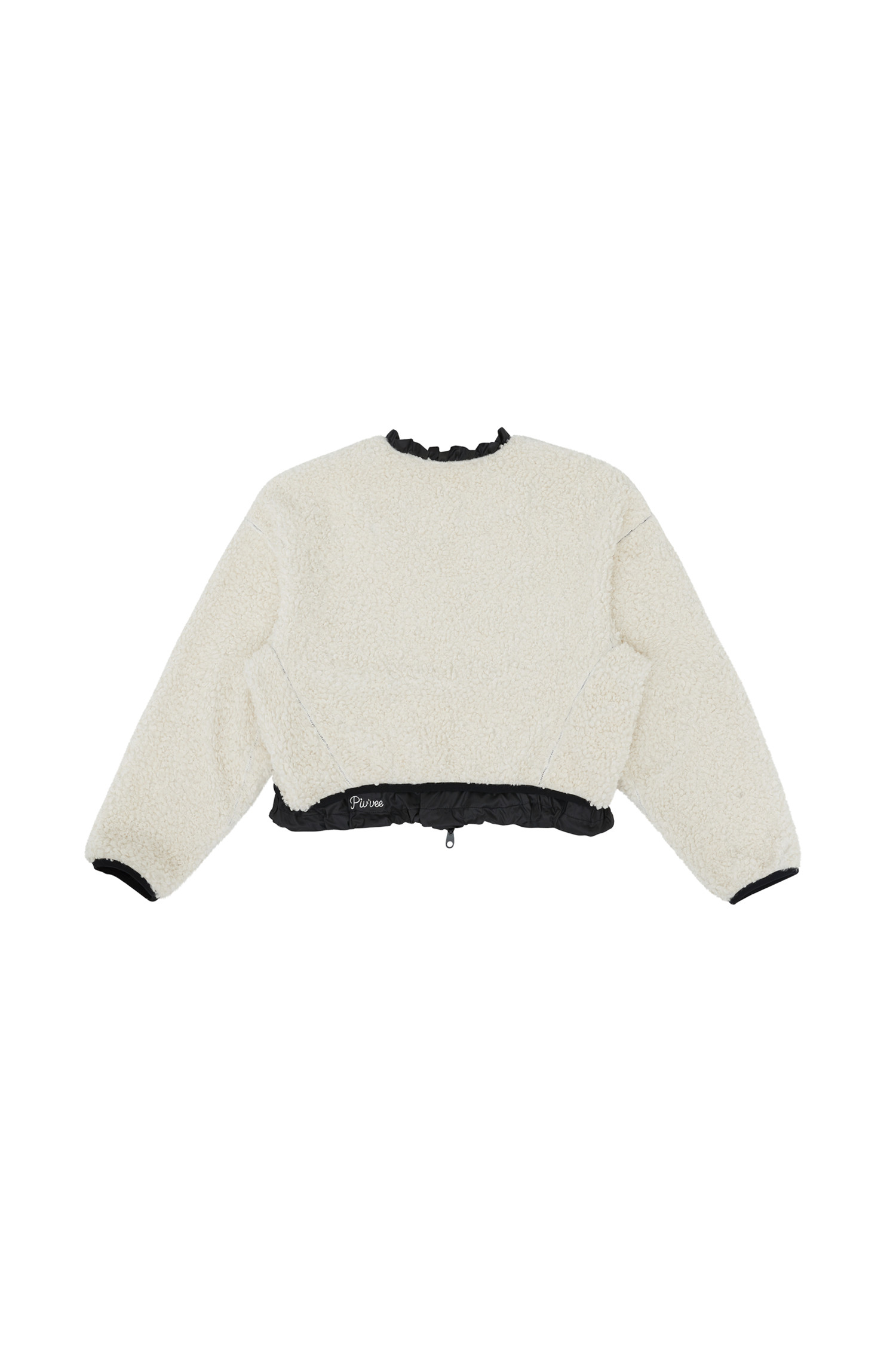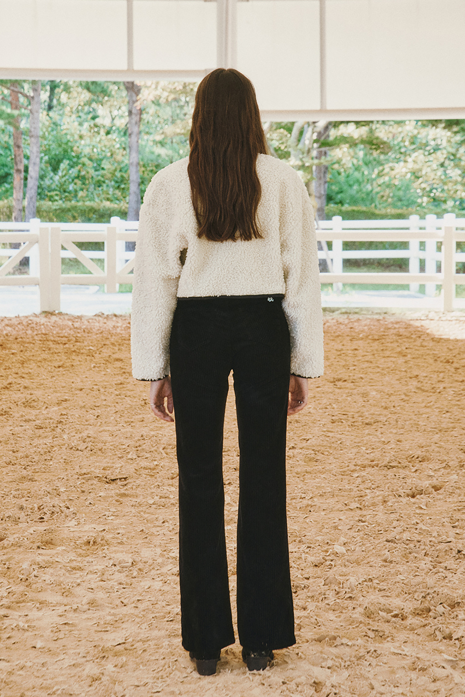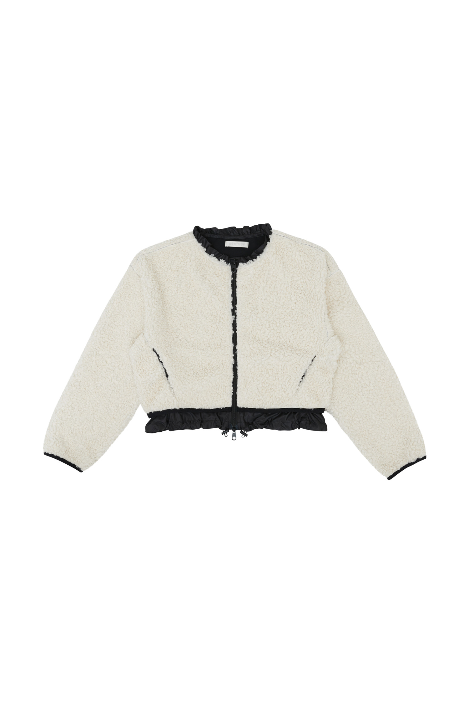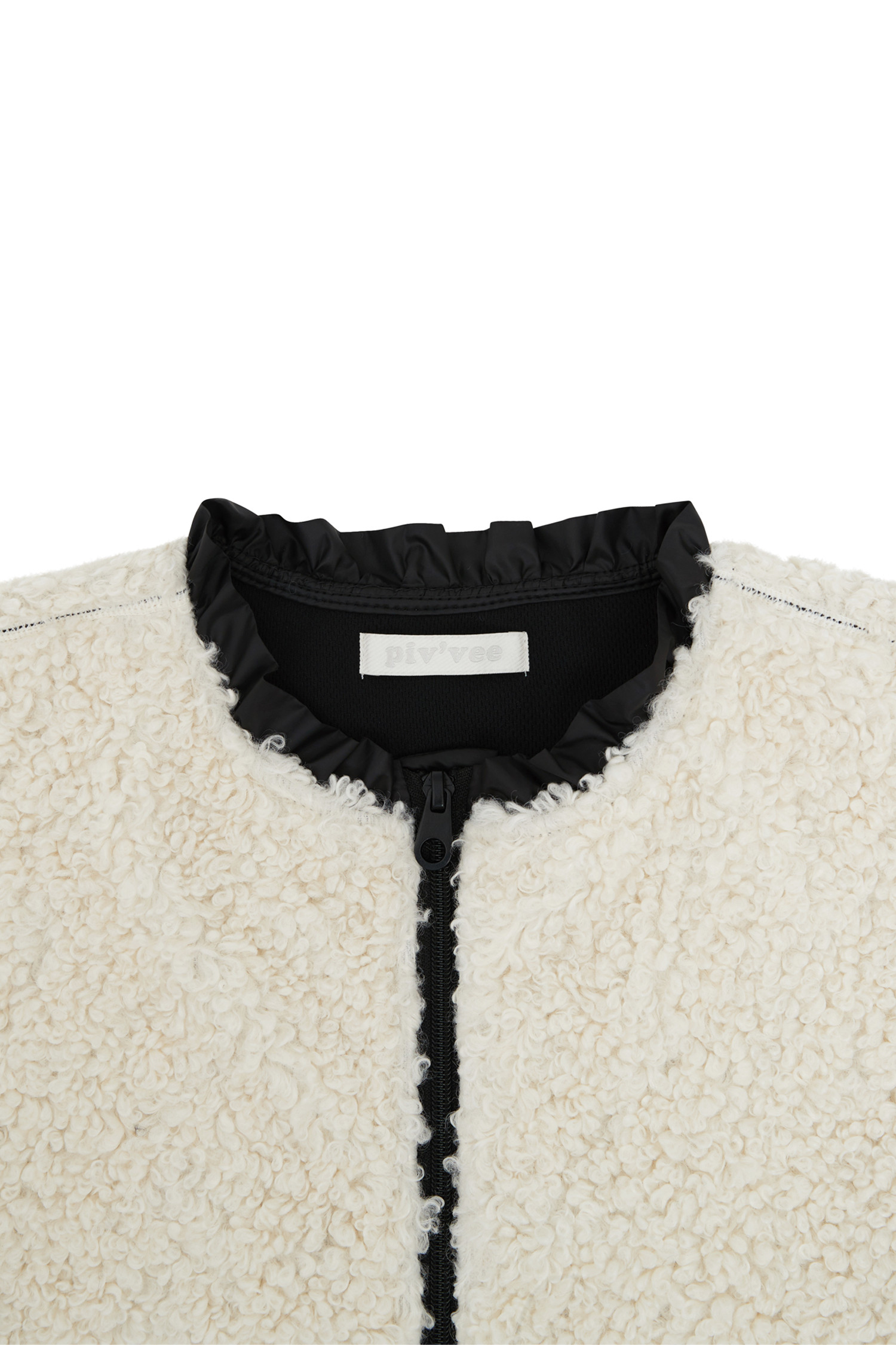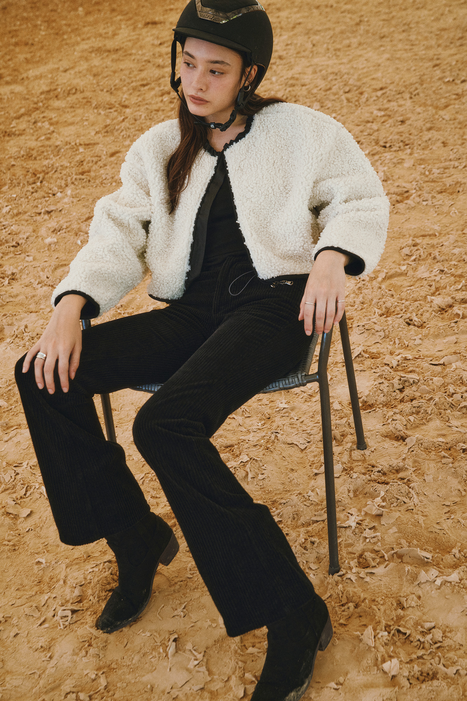 부클 원단과 우븐 원단 배색 조합으로 따뜻하면서 경쾌한 무드 연출