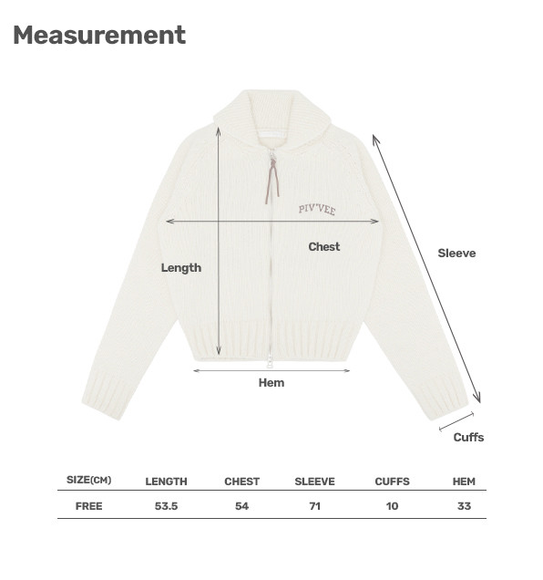 | 치수 | <MEASUREMENT> F LENGTH 53.5CM CHEST 54CM SLEEVE 71CM CUFFS 10CM HEM 33CM |