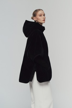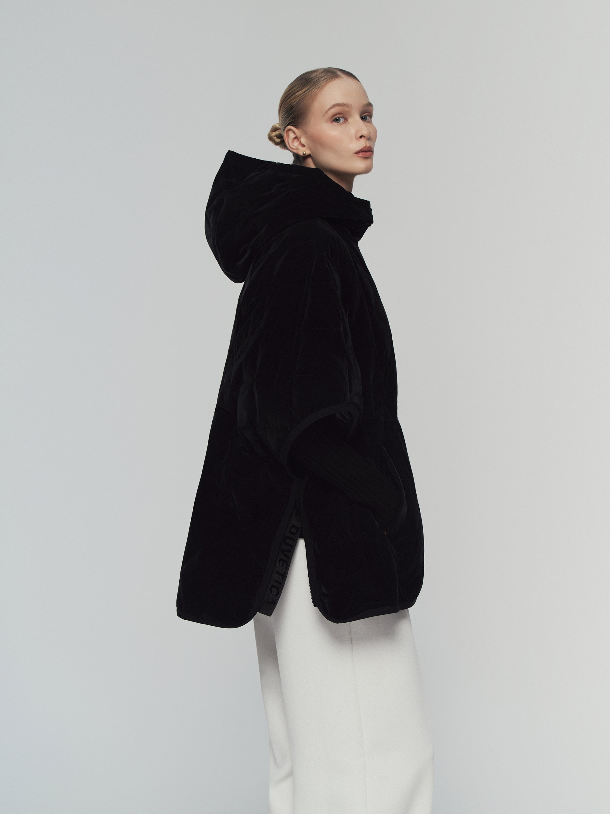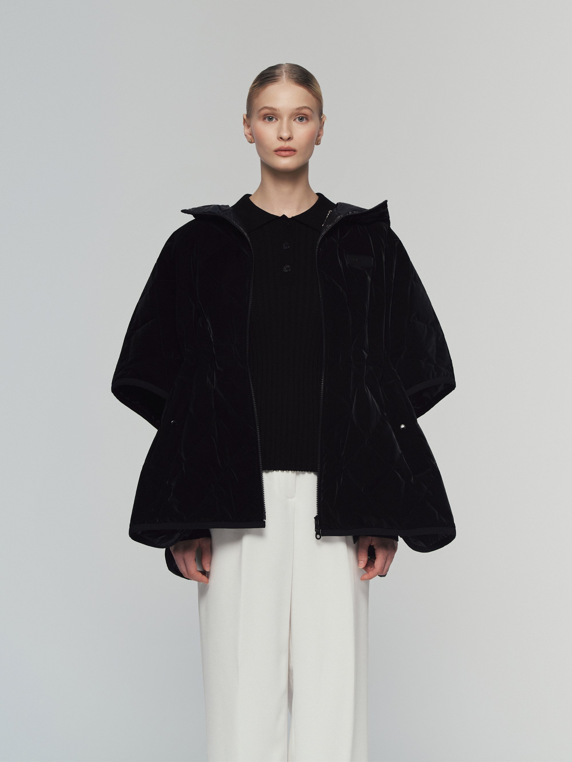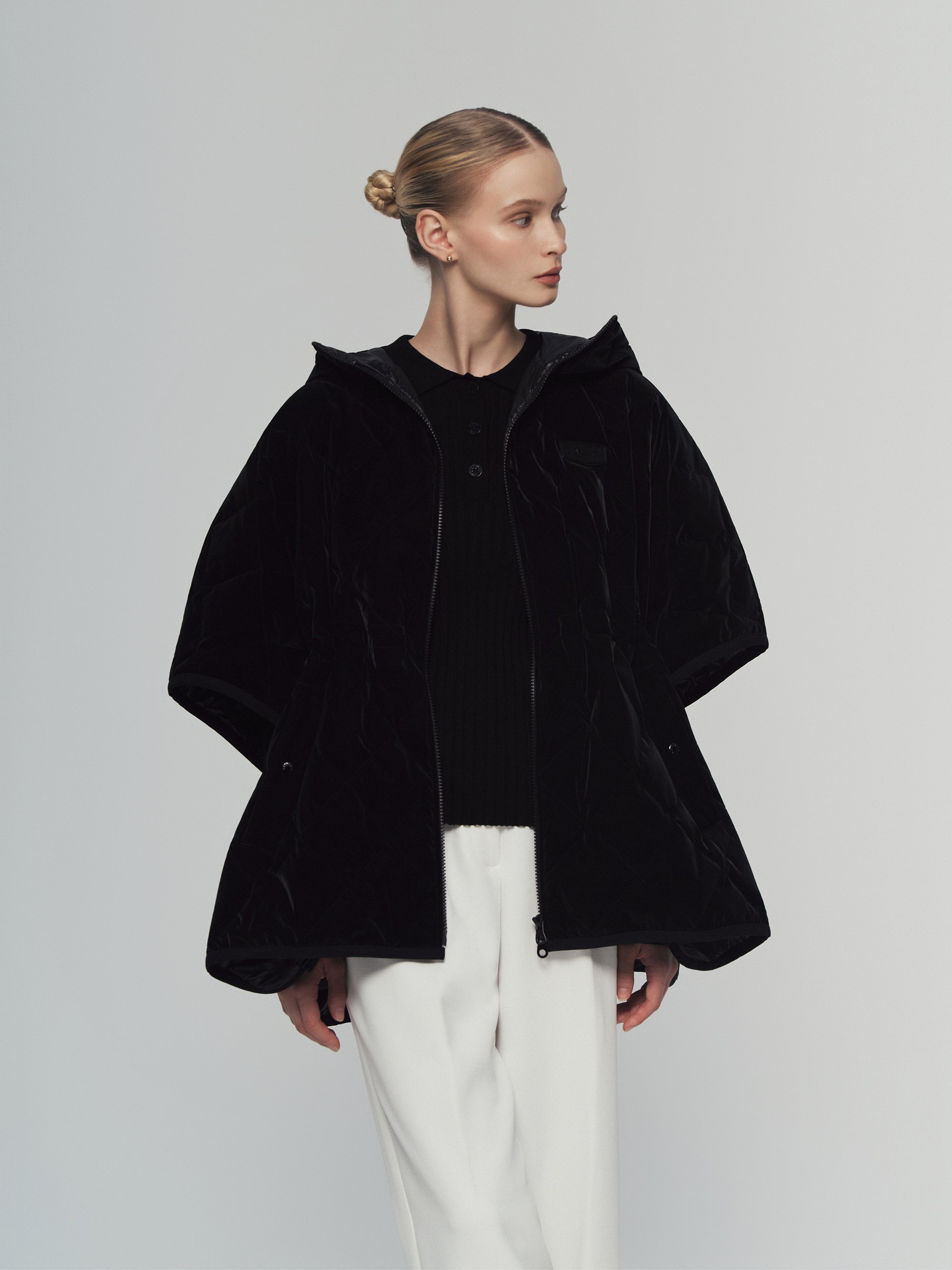 에우리피데 벨벳 케이프형 경량 다운자켓