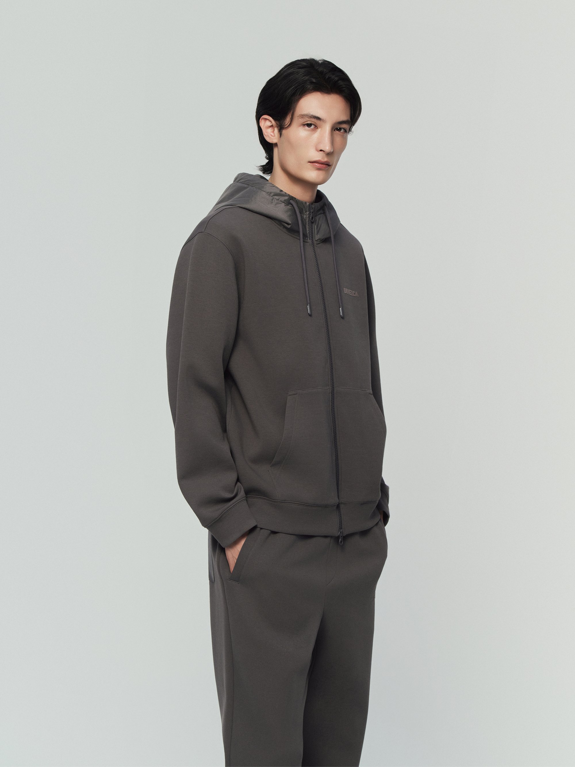- 브랜드의 시그니처 프리미엄 저지와 우븐을 믹스한 레그레소 후디