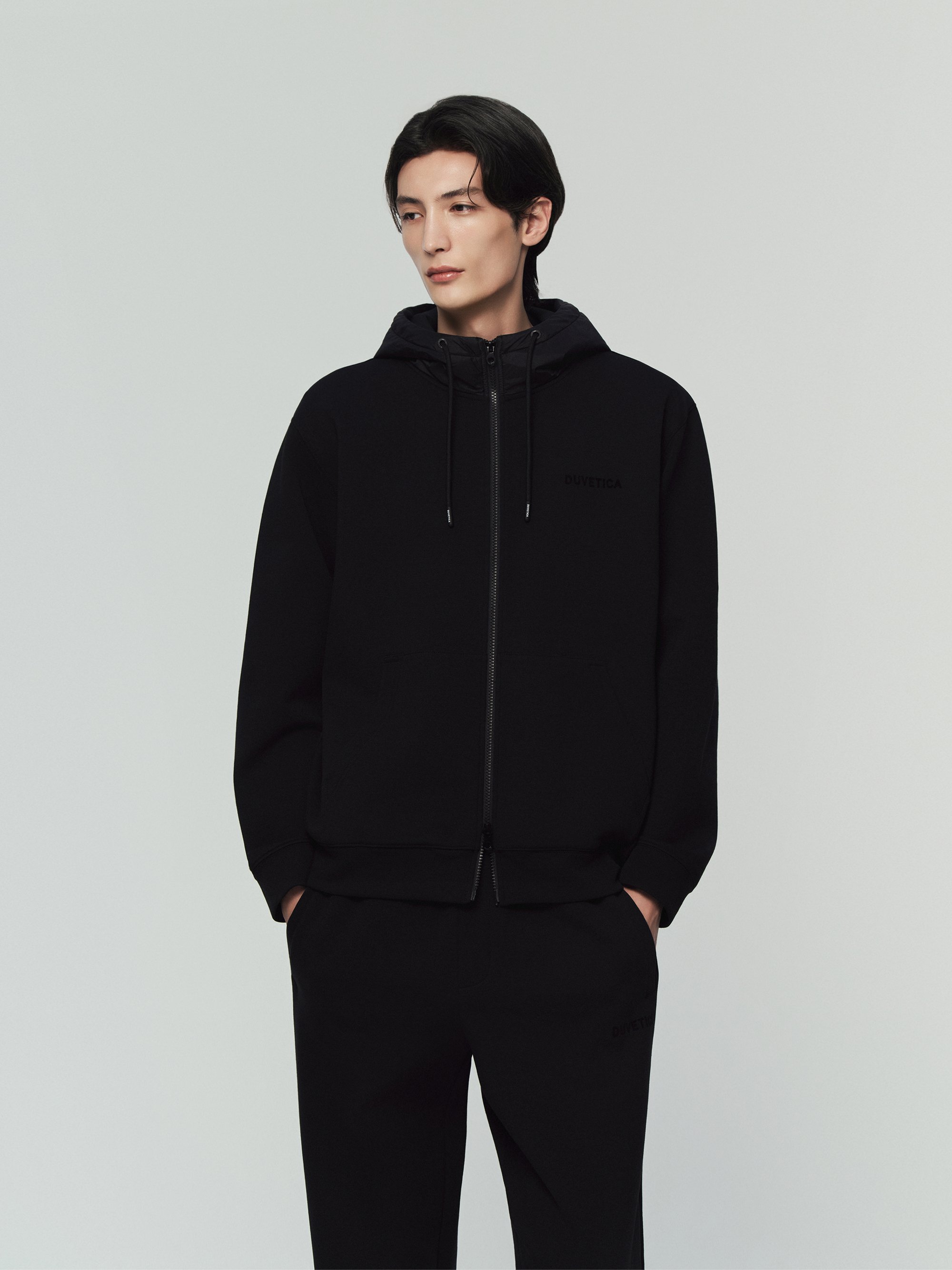 - 브랜드의 시그니처 프리미엄 저지와 우븐을 믹스한 레그레소 후디