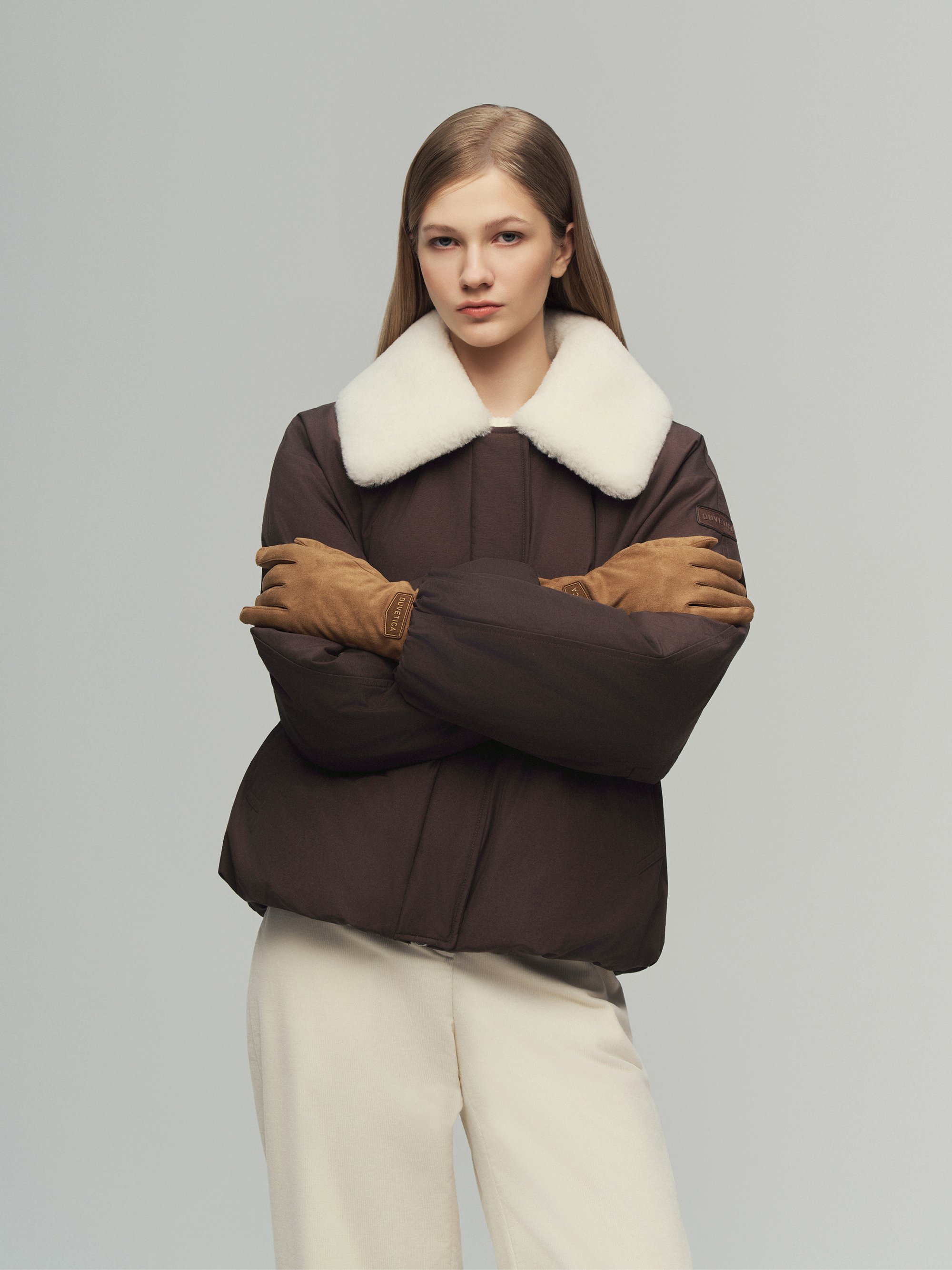 - 손등에는 DUVETICA 로고 와펜을 배치하여 브랜드 아이덴티티 강조
