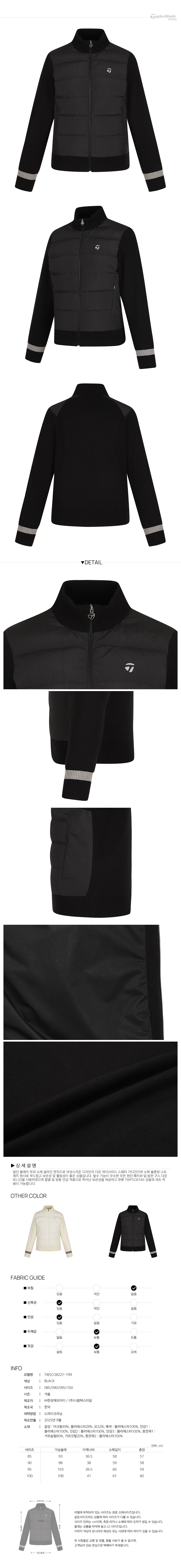 [테일러메이드] 25FW 여성 몸판 다운 하이브리드 니트 가디건 TWSCO8221-199