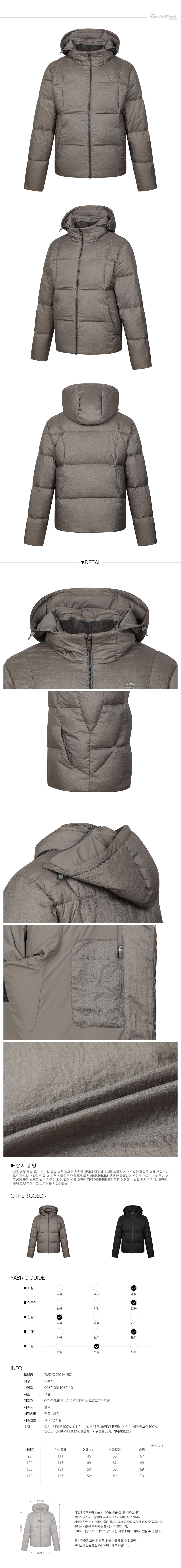 | 소재 | 겉감 : 나일론100%, 안감1 : 나일론91%, 폴리우레탄9%, 안감2 : 폴리에스터100%, 안감3 : 폴리에스터100%, 충전재 : 거위솜털80%, 거위깃털20% |