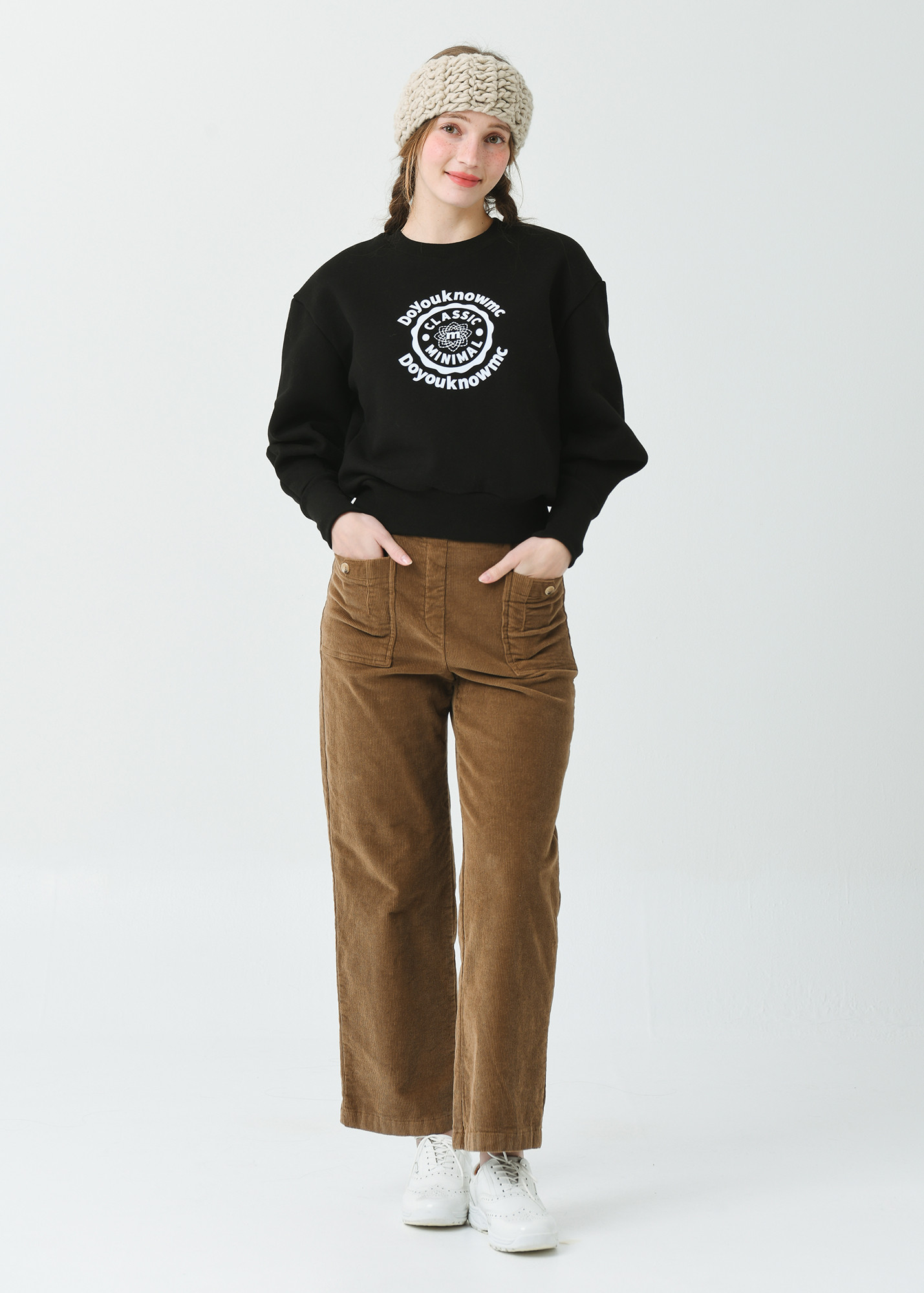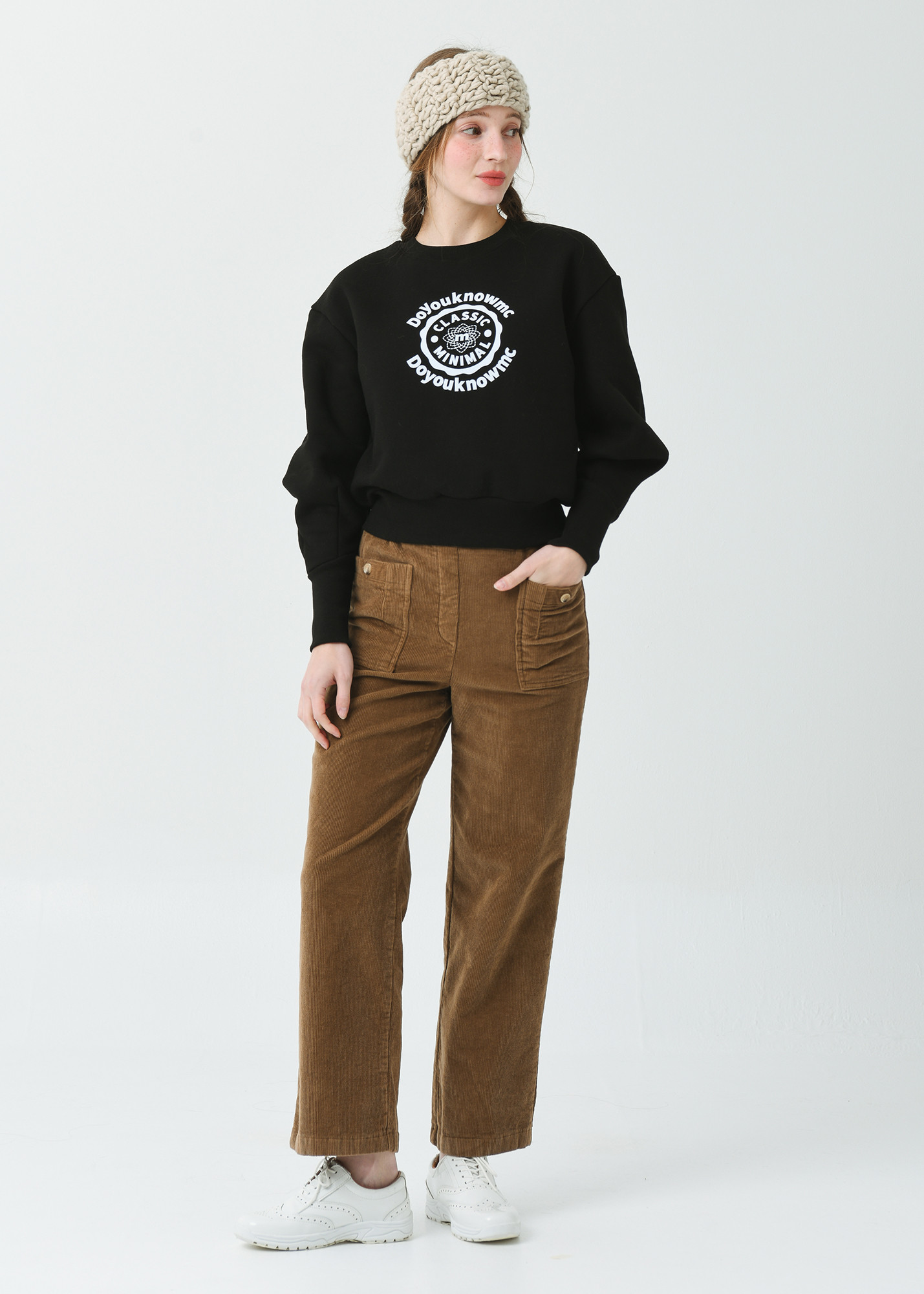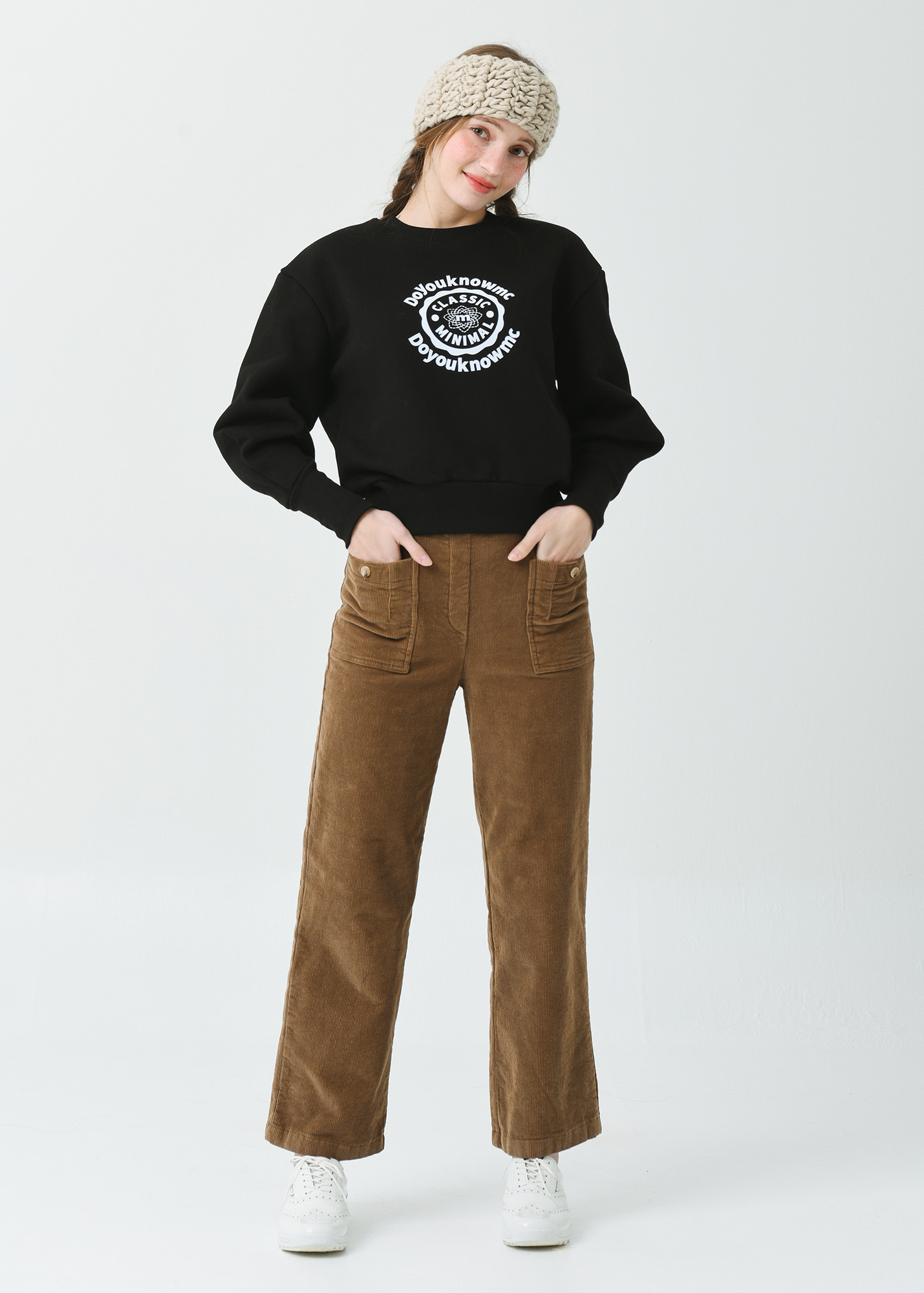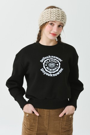 볼륨감이 강조되어, 여성스러운 느낌을 주는 크롭 길이감의 스웻 셔츠입니다.