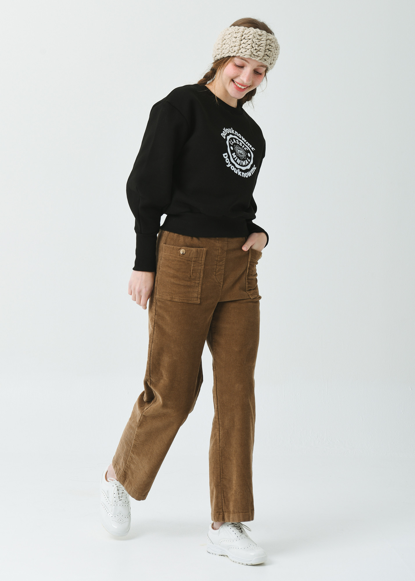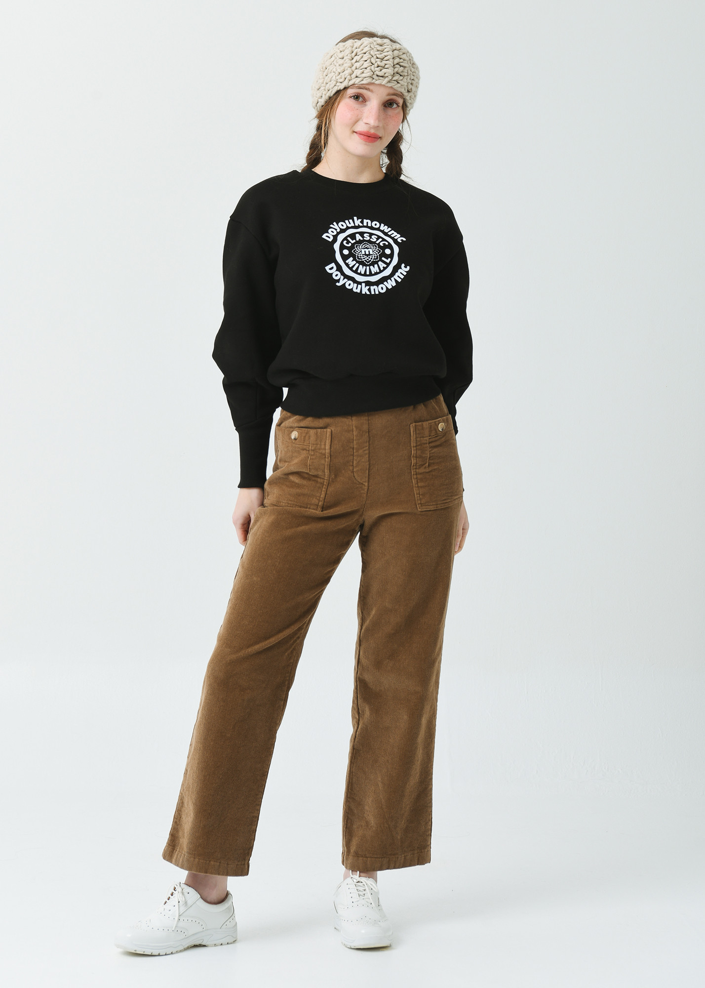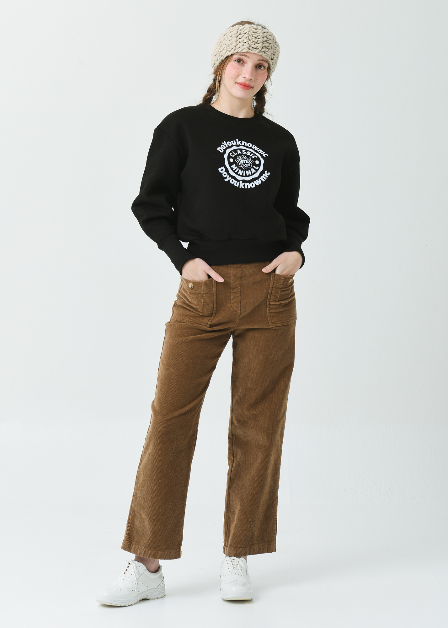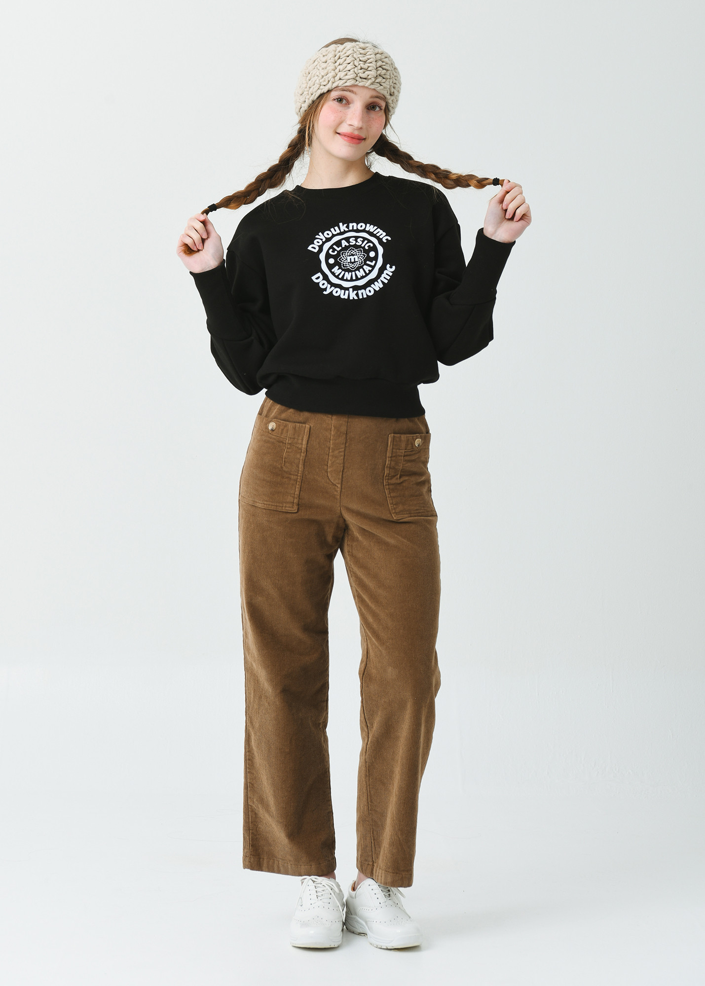 볼륨감이 강조되어, 여성스러운 느낌을 주는 크롭 길이감의 스웻 셔츠입니다.