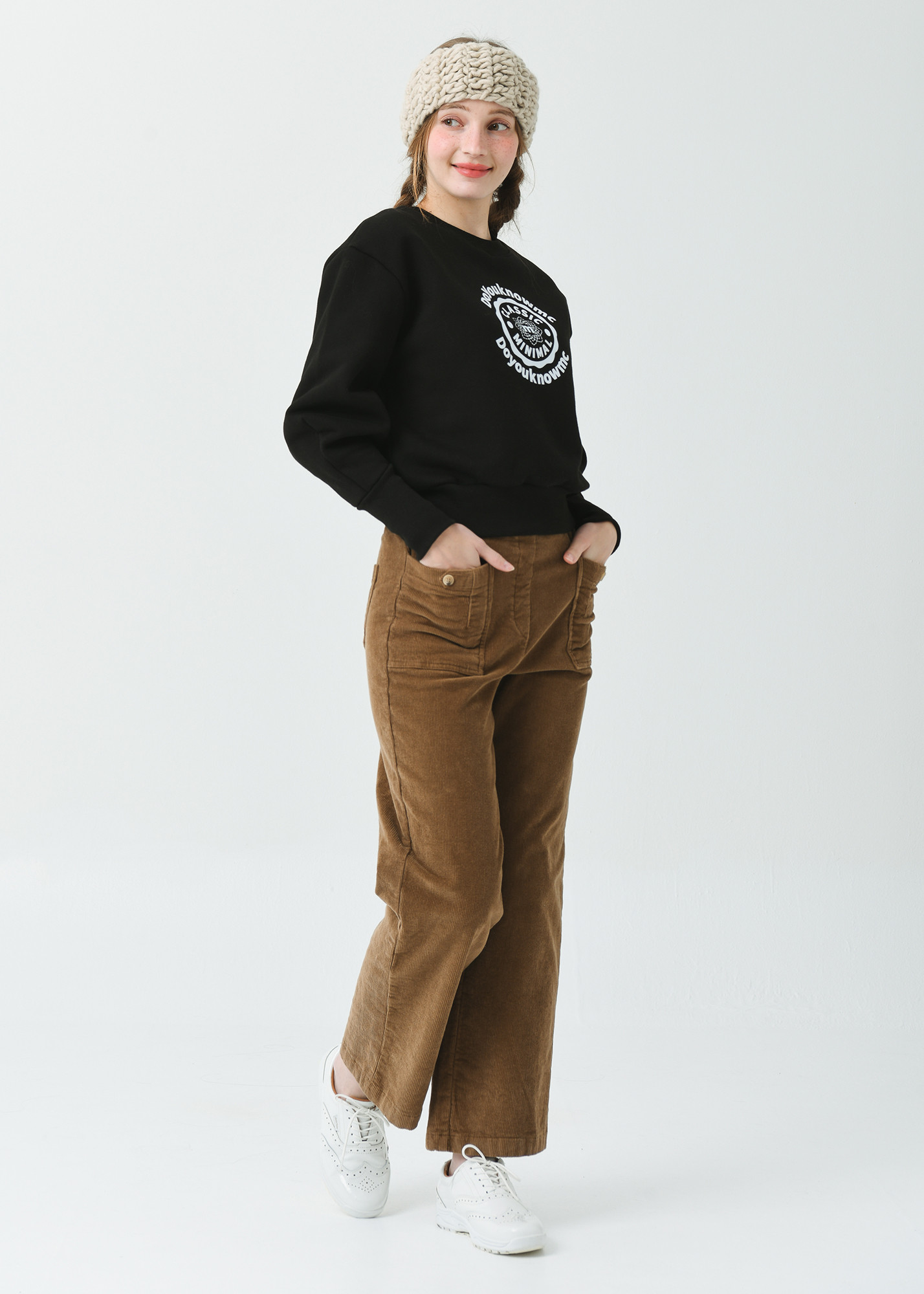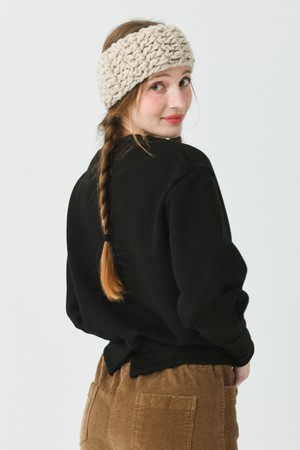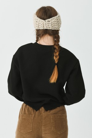25FW 도톰 안 기모 쎄미 벌룬 소매 크롭 블랙 스웻 셔츠