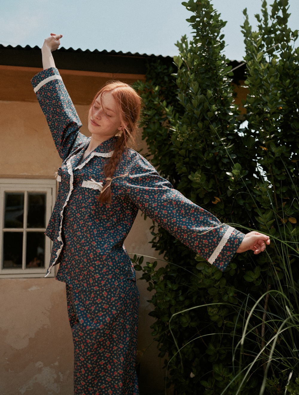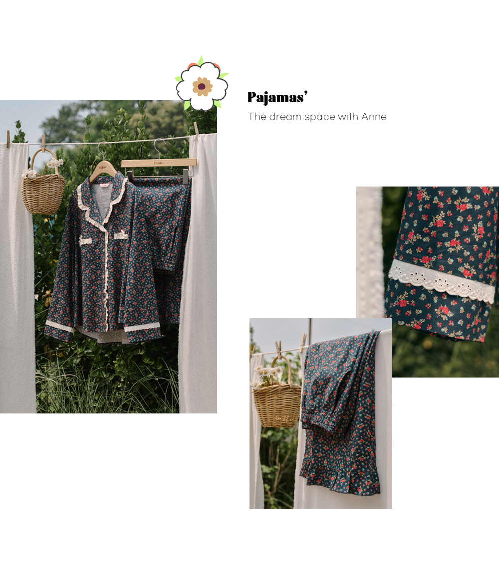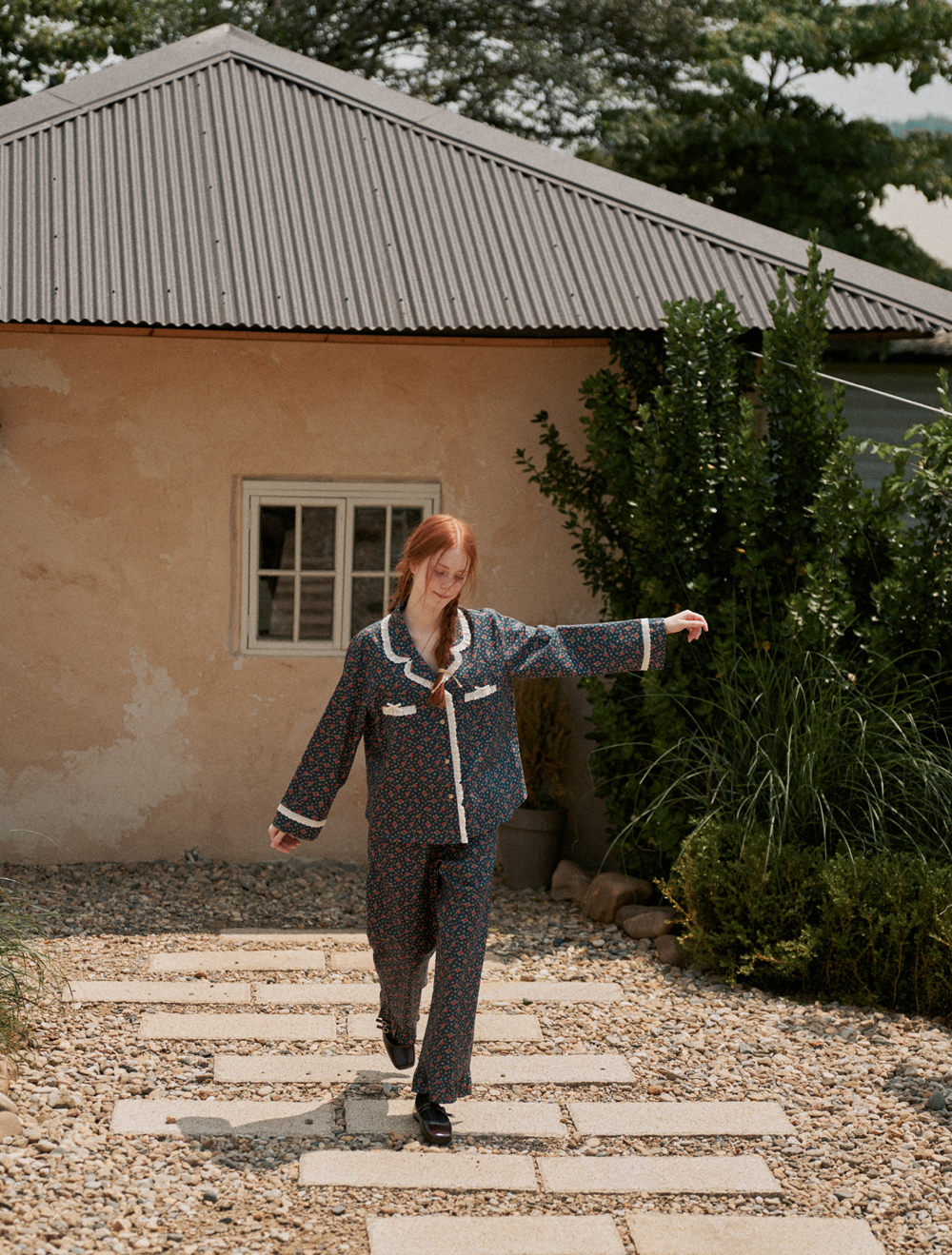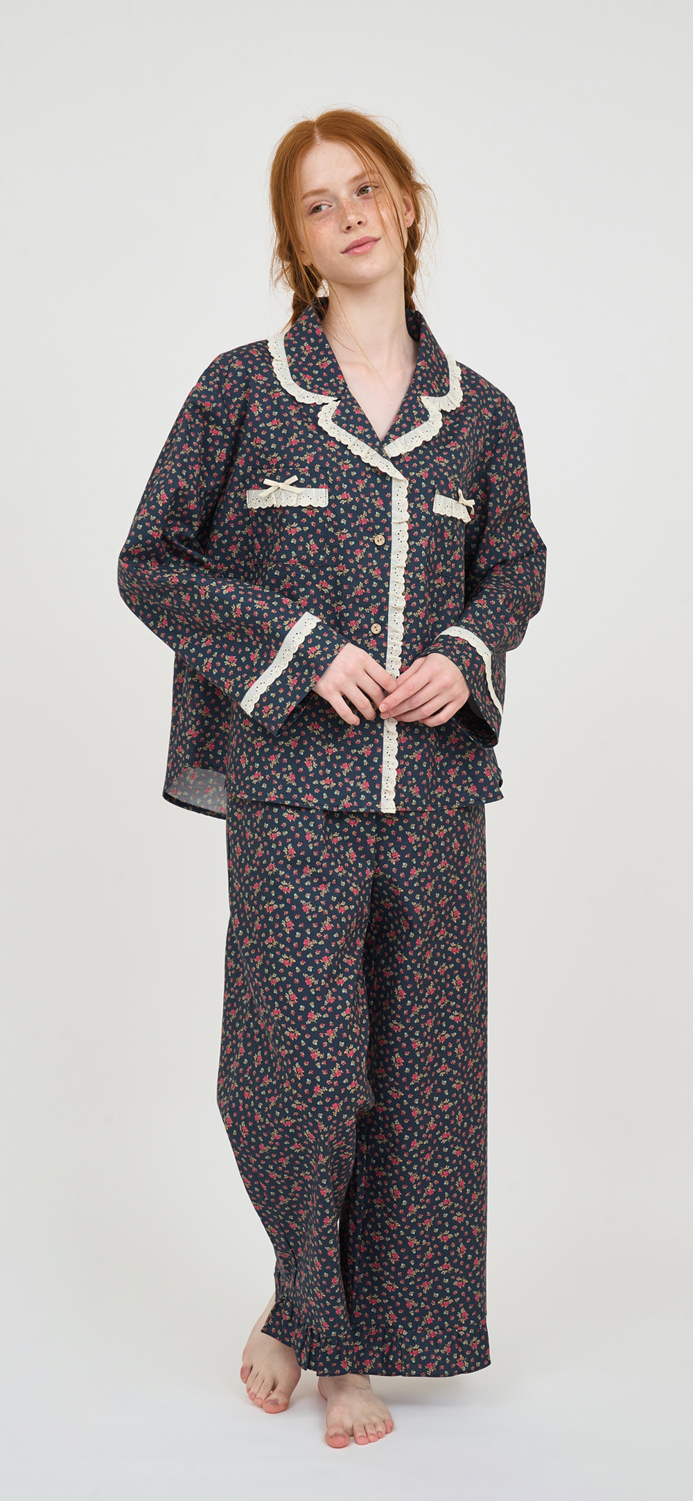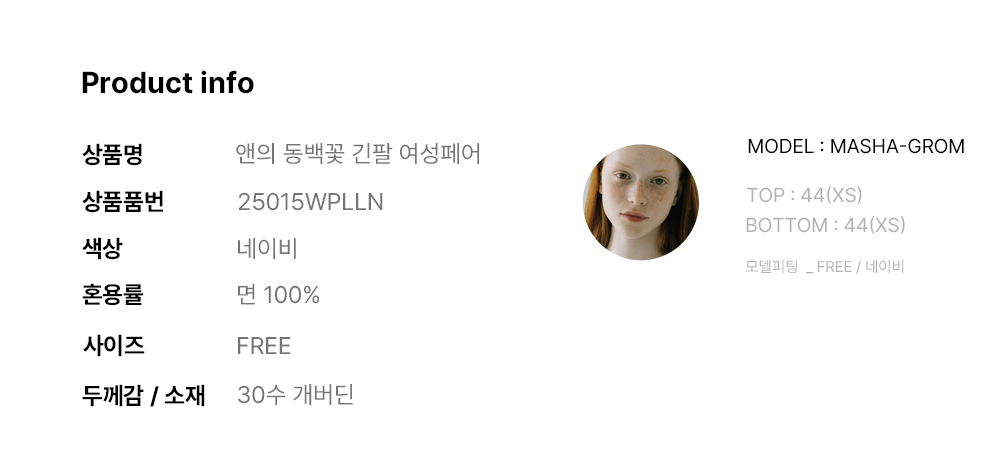 앤의 동백꽃 긴팔 여성페어 네이비 (30수)