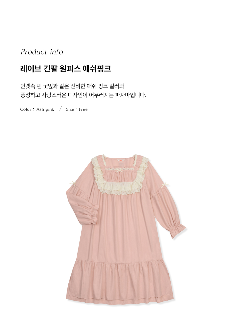 레이브 긴팔 원피스 애쉬핑크 (30수)