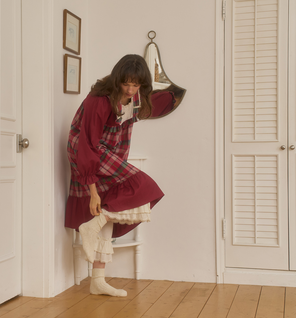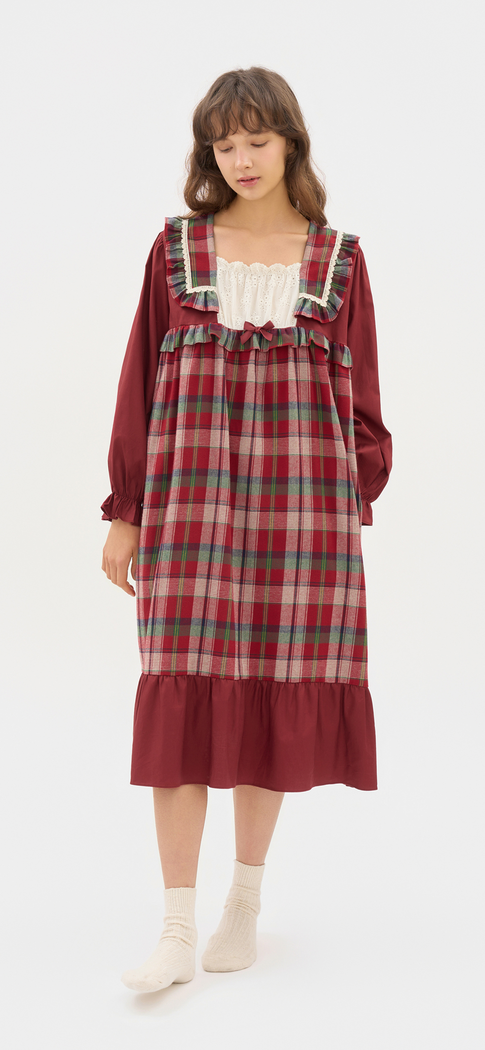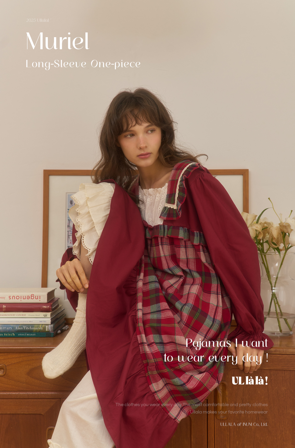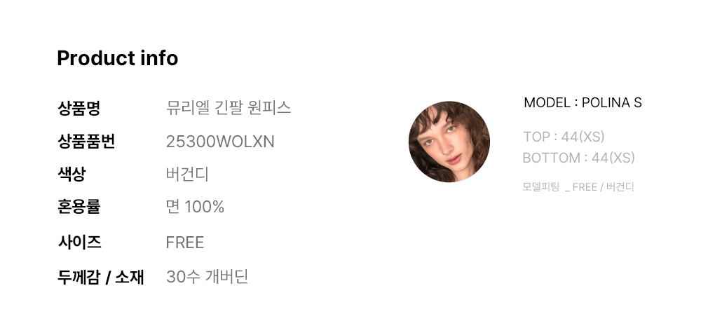 뮤리엘 긴팔 원피스 버건디 (30수)