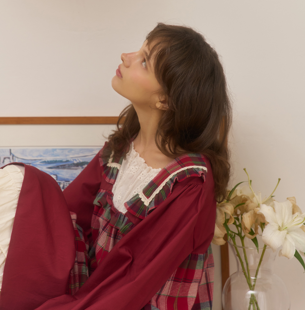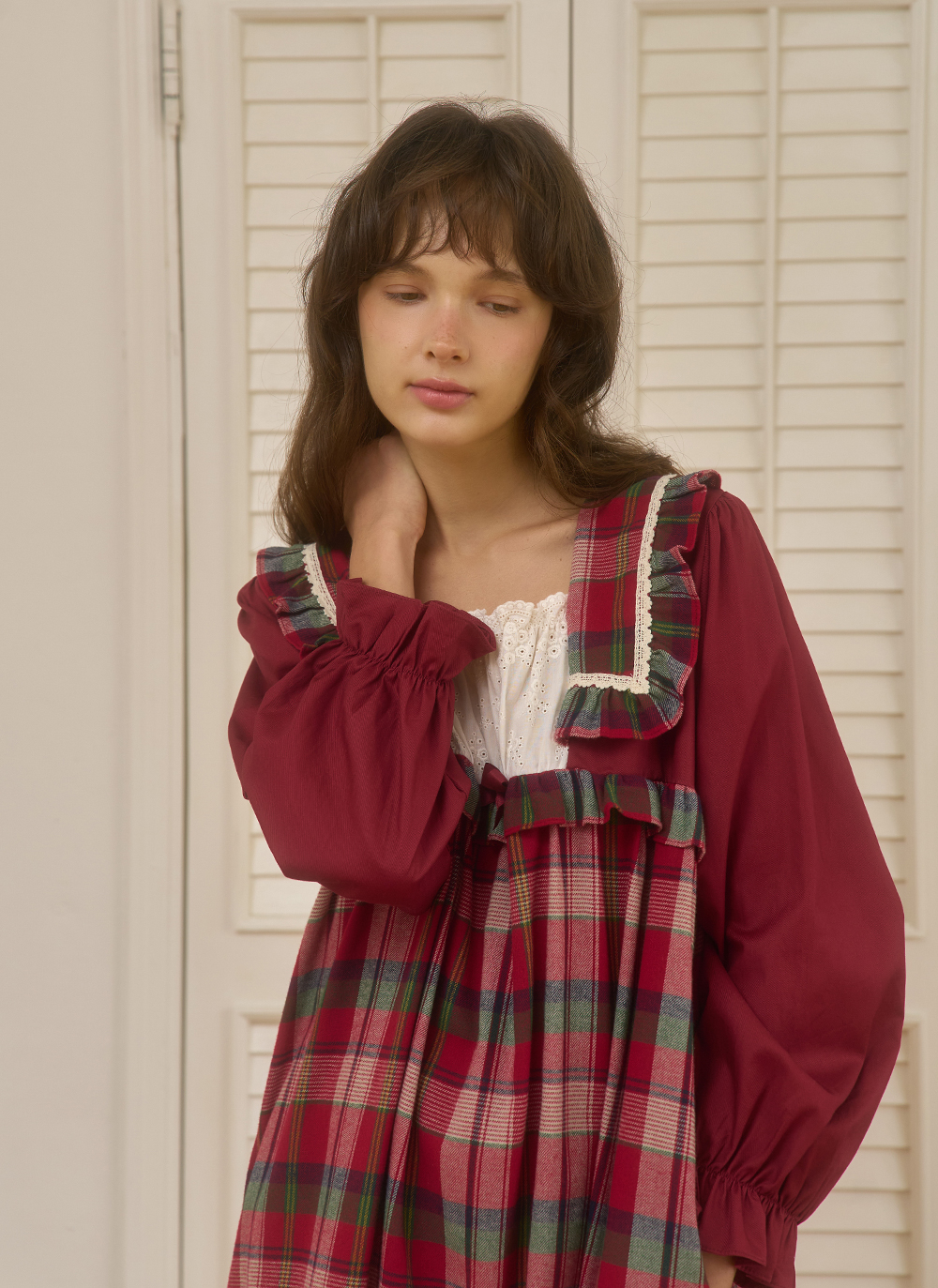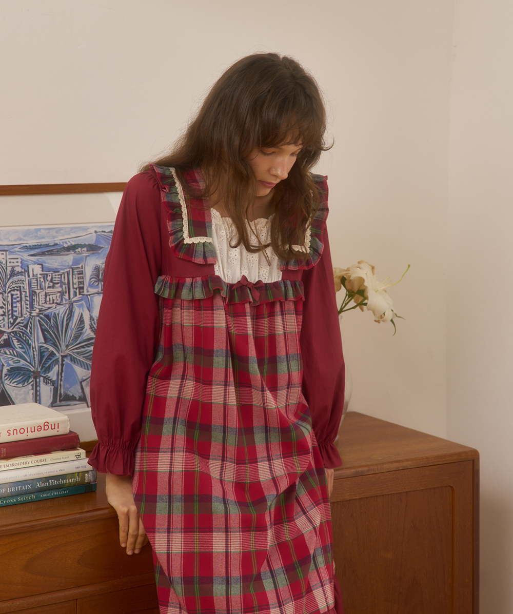 뮤리엘 긴팔 원피스 버건디 (30수)