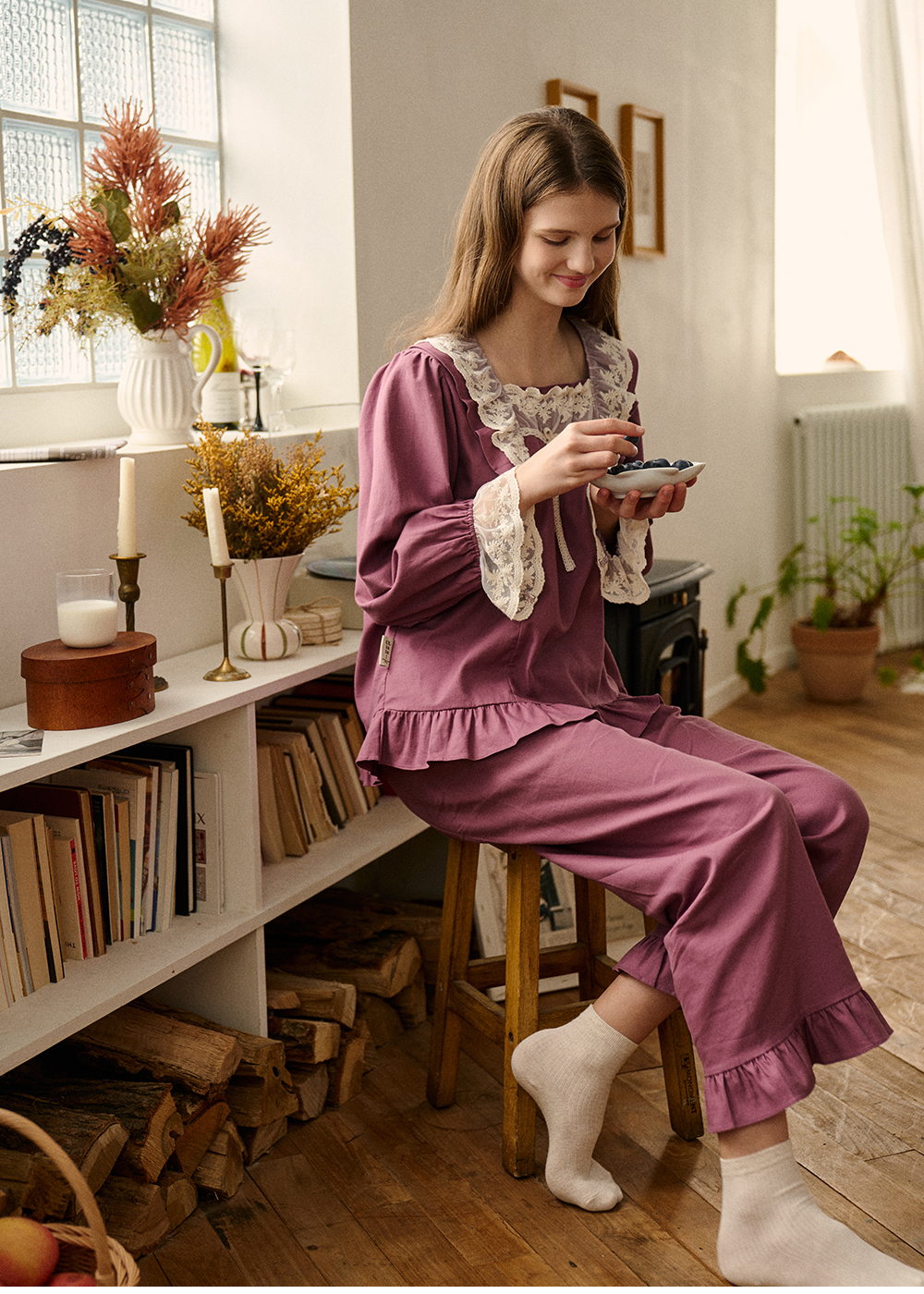 세이블 긴팔 투피스 플럼 (21수)