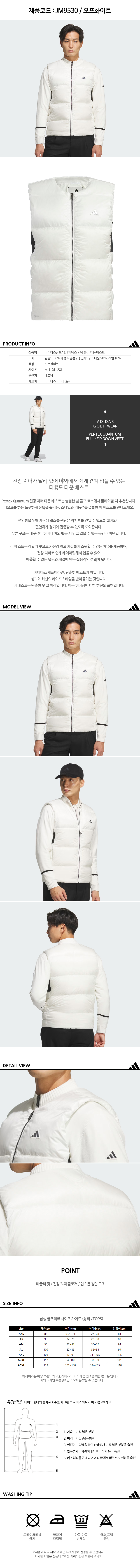 [아디다스골프] 25FW JM9530 퍼텍스 퀀텀 풀집 남성 다운 베스트