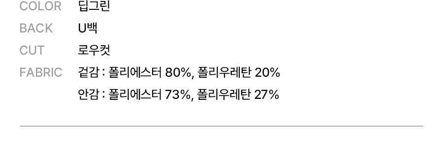 | 소재 | 겉감: 폴리에스터 80%, 폴리우레탄 20% / 안감: 폴리에스터 73%, 폴리우레탄 27% |