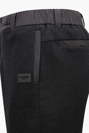- 몸판 니트와 부분적 우븐원단을 사용하여, 신축성이 뛰어나 간절기 라운딩 시에 유용하게 활용될 수 있는 KNIT HYBRID PANTS