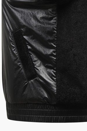 -후드 착용시 앞목이 닿는 부위와 주머니 입구를 셔닐원사로 니트편직하여 후드를 쓰고 벗거나 주머니에 손을 넣을 때도 셔닐원사의 부드러움을 느낄 수 있도록 설계