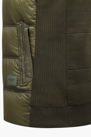 - 등판은 경량 고신축사의 니트를 조직감 있게 설계하여 테크니컬한 연출이 가능하고, 다운자켓 안쪽으로 레이어드하기에 편리한 아이템