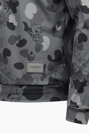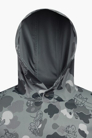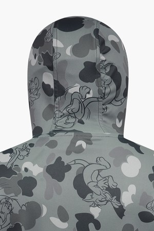 - TOM & JERRY 캐릭터가 그려진 카모플라주 전판 프린트 패턴으로 캐주얼한 무드로 착용 가능한 아이템