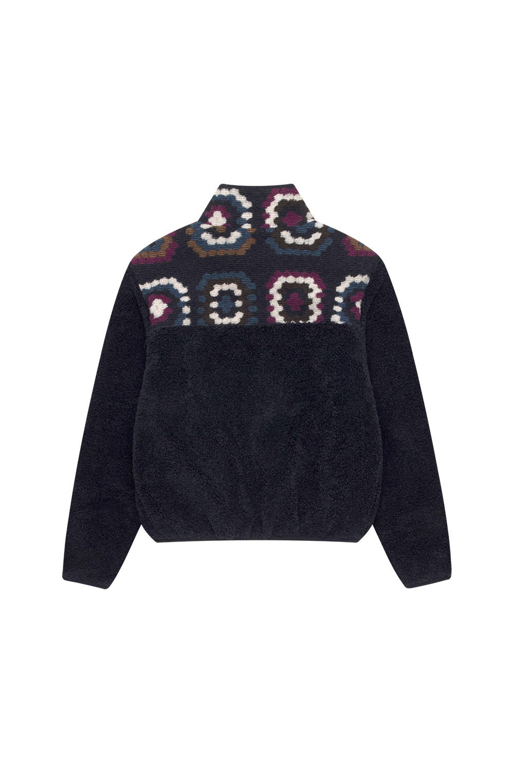 빈티지한 감성의 패턴이 매력적인 플리스 자켓입니다.