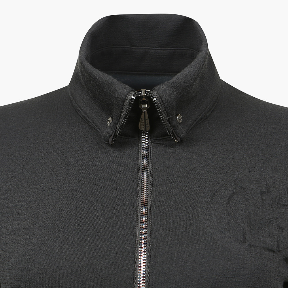 - 이태리 수입 울저지 소재의 제품으로, 뛰어난 신축성을 바탕으로 보온성과 부드러운 착용감까지 가미된 하이넥 집업 자켓