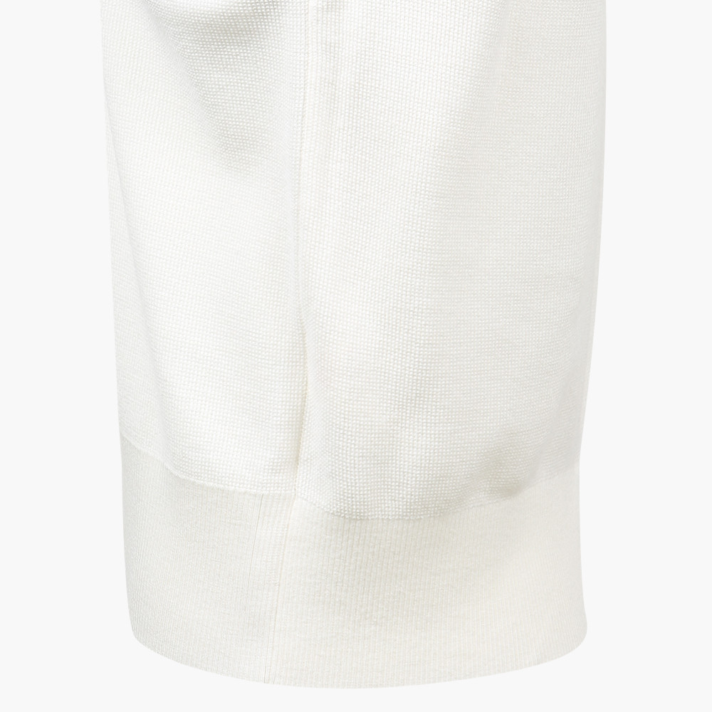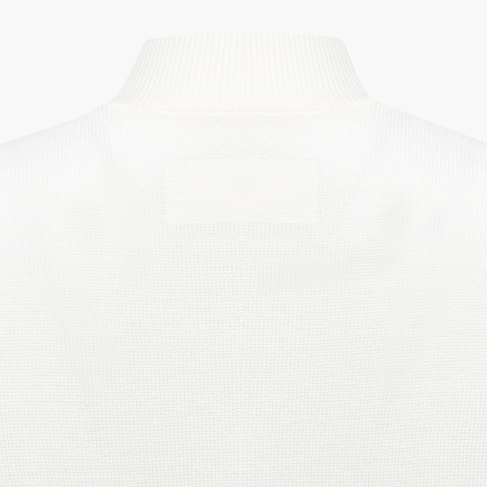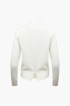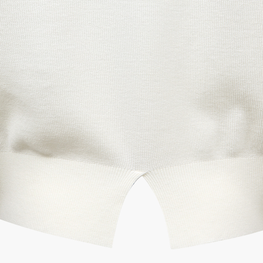 - 이태리 수입 프리미엄 울 니트 하이넥. 가슴부분 고급스러운 로고 자카드 포인트로 세미루즈핏의 여유로움과 밑단의 슬릿이 여성적인 느낌을 강조한 제품