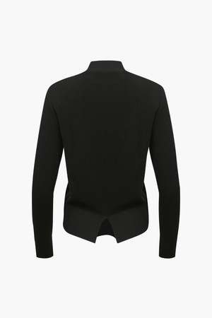 - 이태리 수입 프리미엄 울 니트 하이넥. 가슴부분 고급스러운 로고 자카드 포인트로 세미루즈핏의 여유로움과 밑단의 슬릿이 여성적인 느낌을 강조한 제품