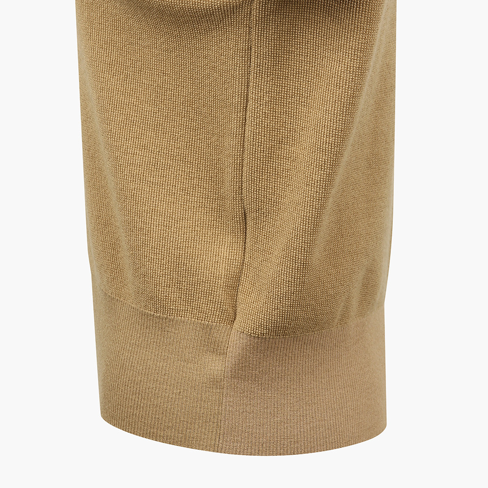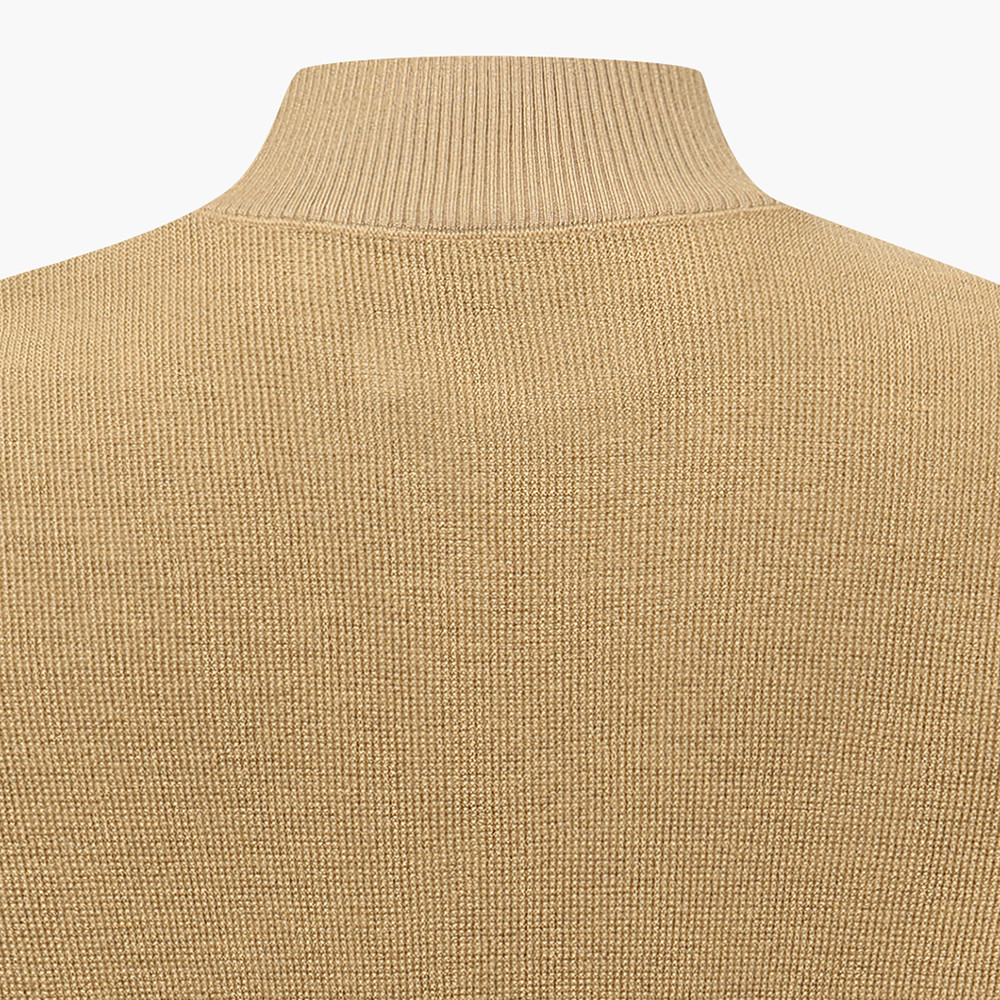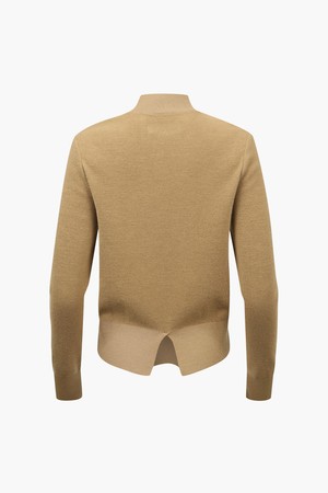 - 이태리 수입 프리미엄 울 니트 하이넥. 가슴부분 고급스러운 로고 자카드 포인트로 세미루즈핏의 여유로움과 밑단의 슬릿이 여성적인 느낌을 강조한 제품