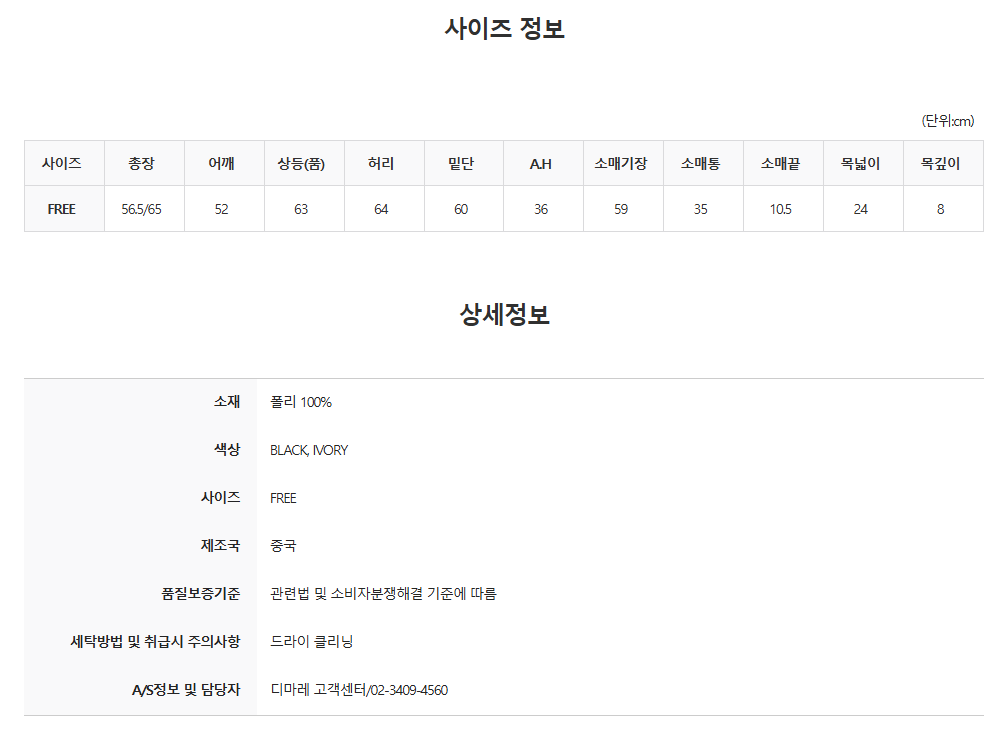 | 제조연월 | 상품상세설명참조 (해당 정보는 실제 상품과 상이할 수 있음. 정확한 제조일은 제품 별도 표기 참고) |
