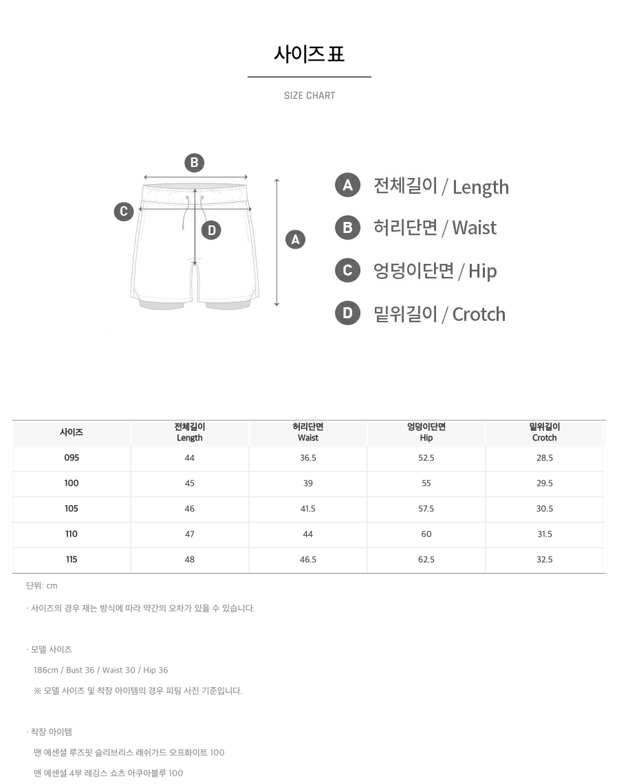 | 소재 | 쇼츠 겉감: 폴리에스터 92%, 폴리우레탄 8%, 레깅스 겉감: 폴리에스터 82%, 폴리우레탄 18% / 쇼츠 안감: 폴리에스터 91%, 폴리우레탄 9%, 이너드로즈 안감: 폴리에스터 73%, 폴리우레탄 27% |