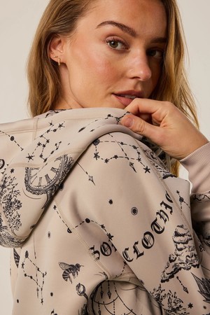 전체적으로 Moon Diamond 프린트가 적용되어 있으며, 목 부분은 형태를 유지하는 스탠드업 칼라로 편안함을 더합니다.