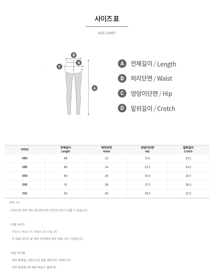 | 소재 | 겉감: 폴리에스터 77%, 폴리우레탄 23% / 안감: 폴리에스터 73%, 폴리우레탄 27% |