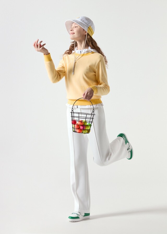 [먼싱웨어] 여성 엘로우 로고 포인트 스웨터