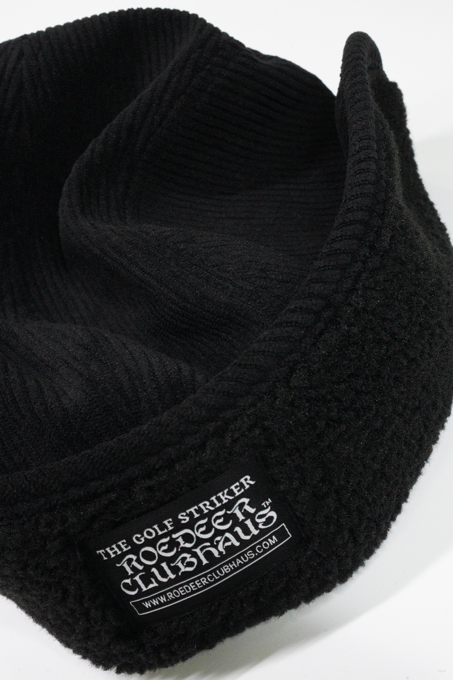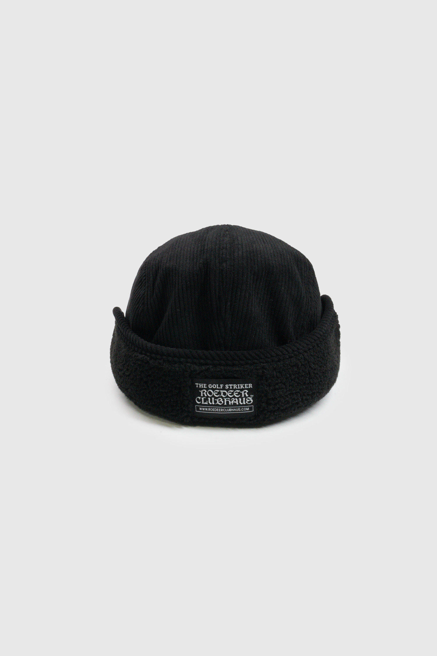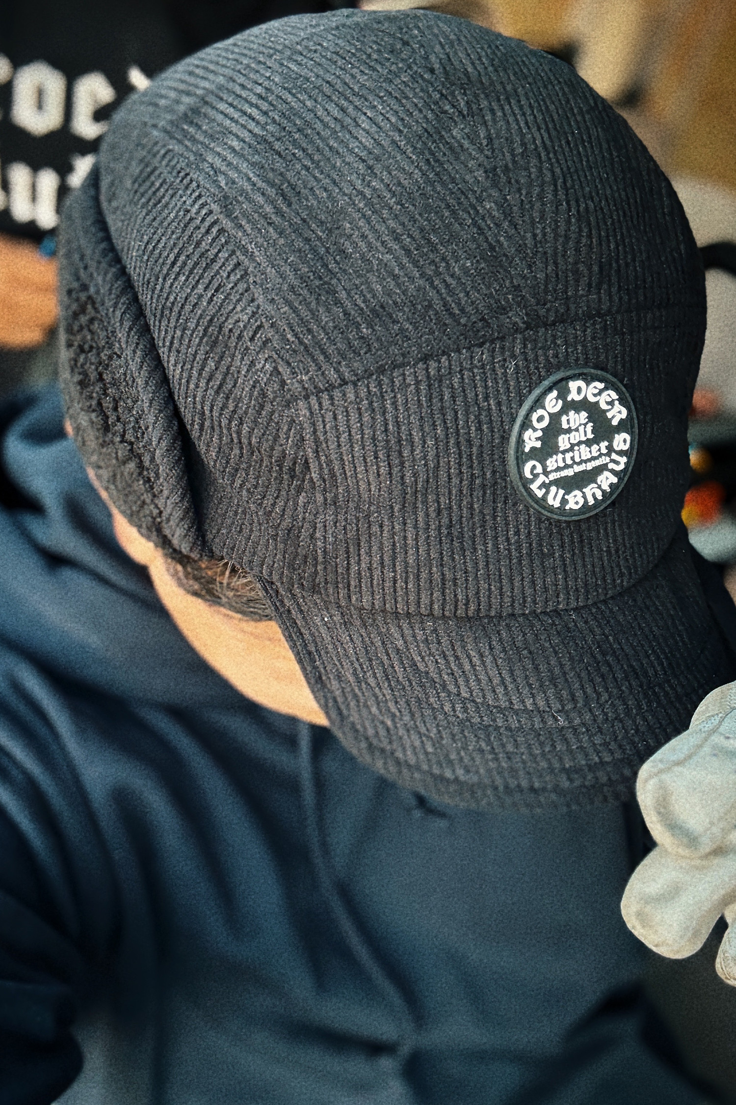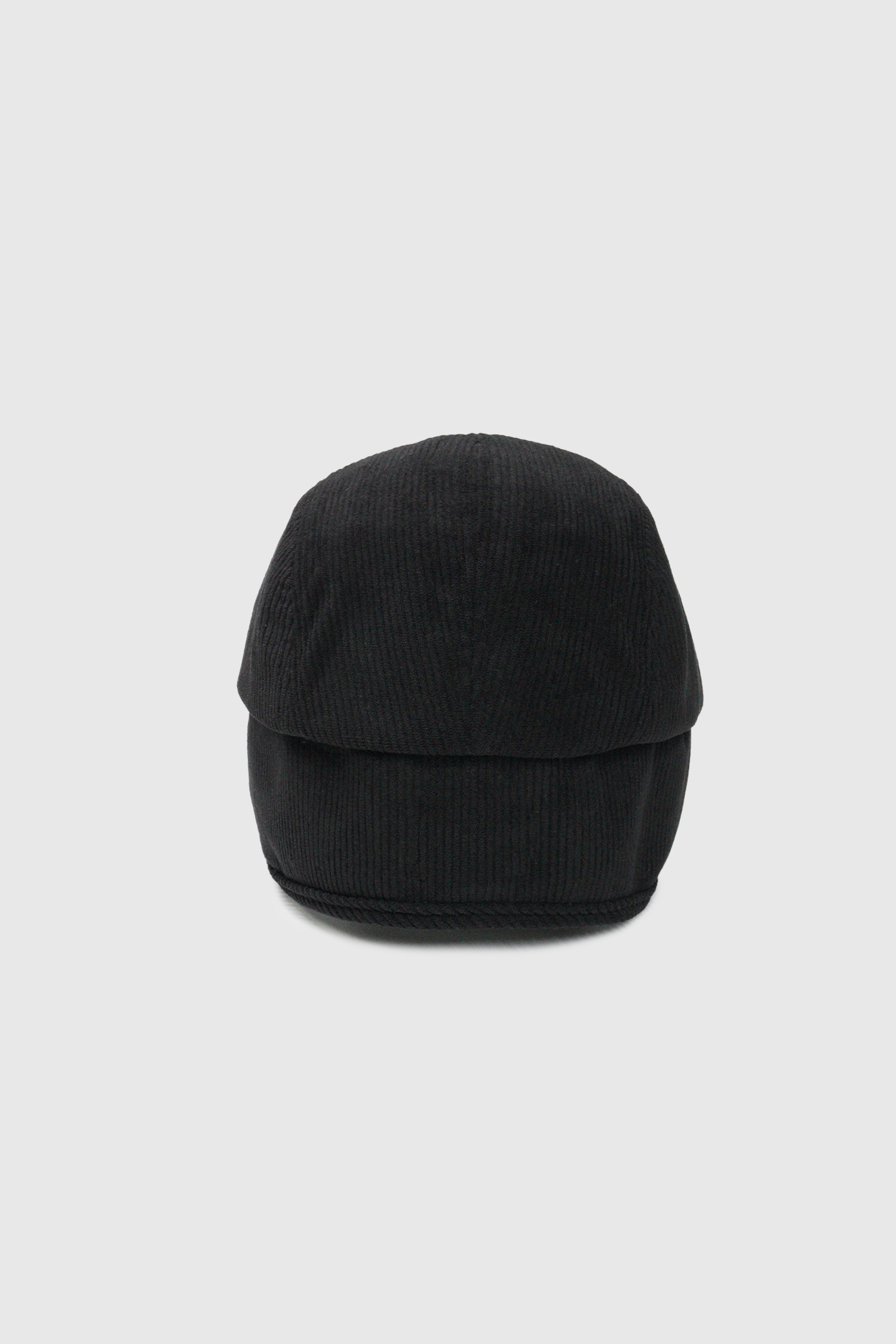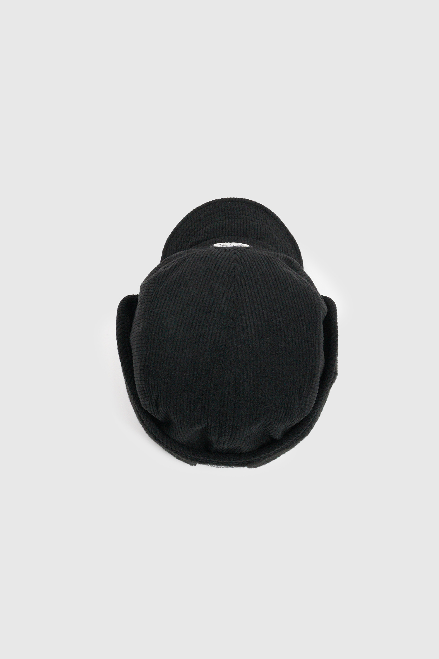 CORDUROY WINTER EAR-FLAP CAP (BLACK / IVORY)