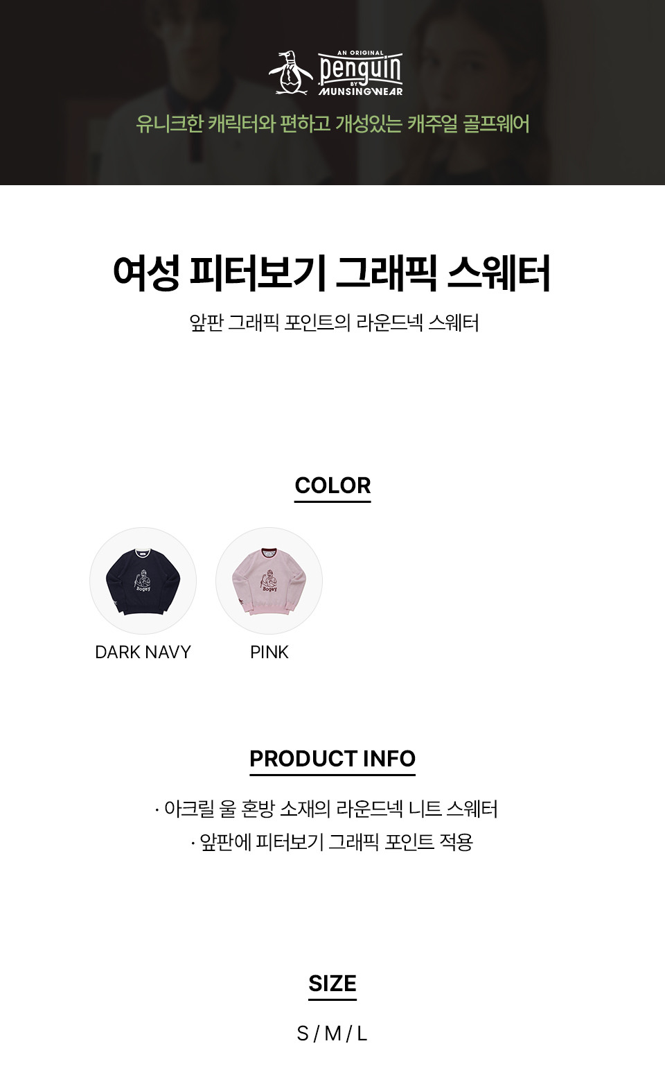 [먼싱웨어] 여성 피터보기 그래픽 스웨터 핑크(MQ322PSW91)