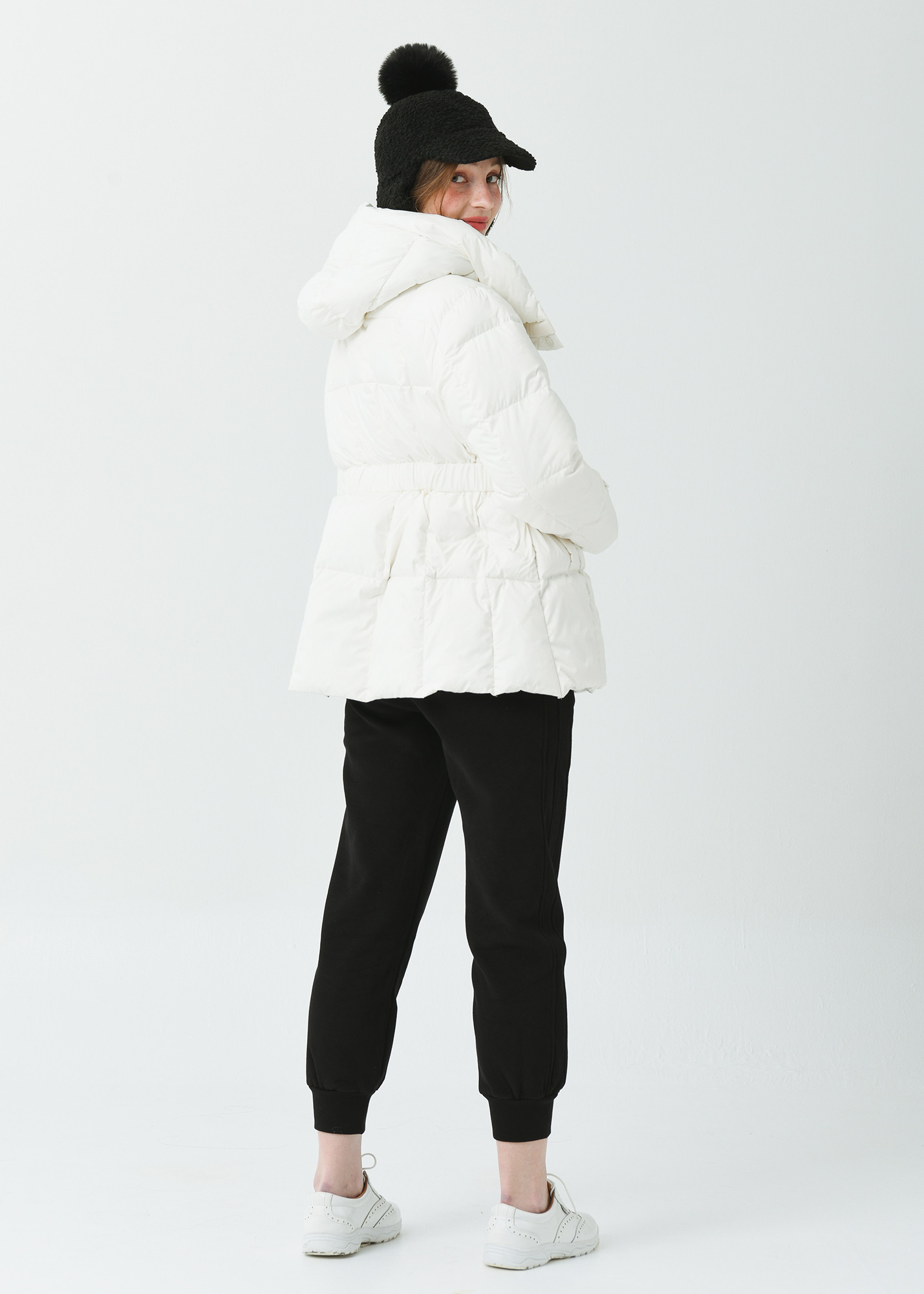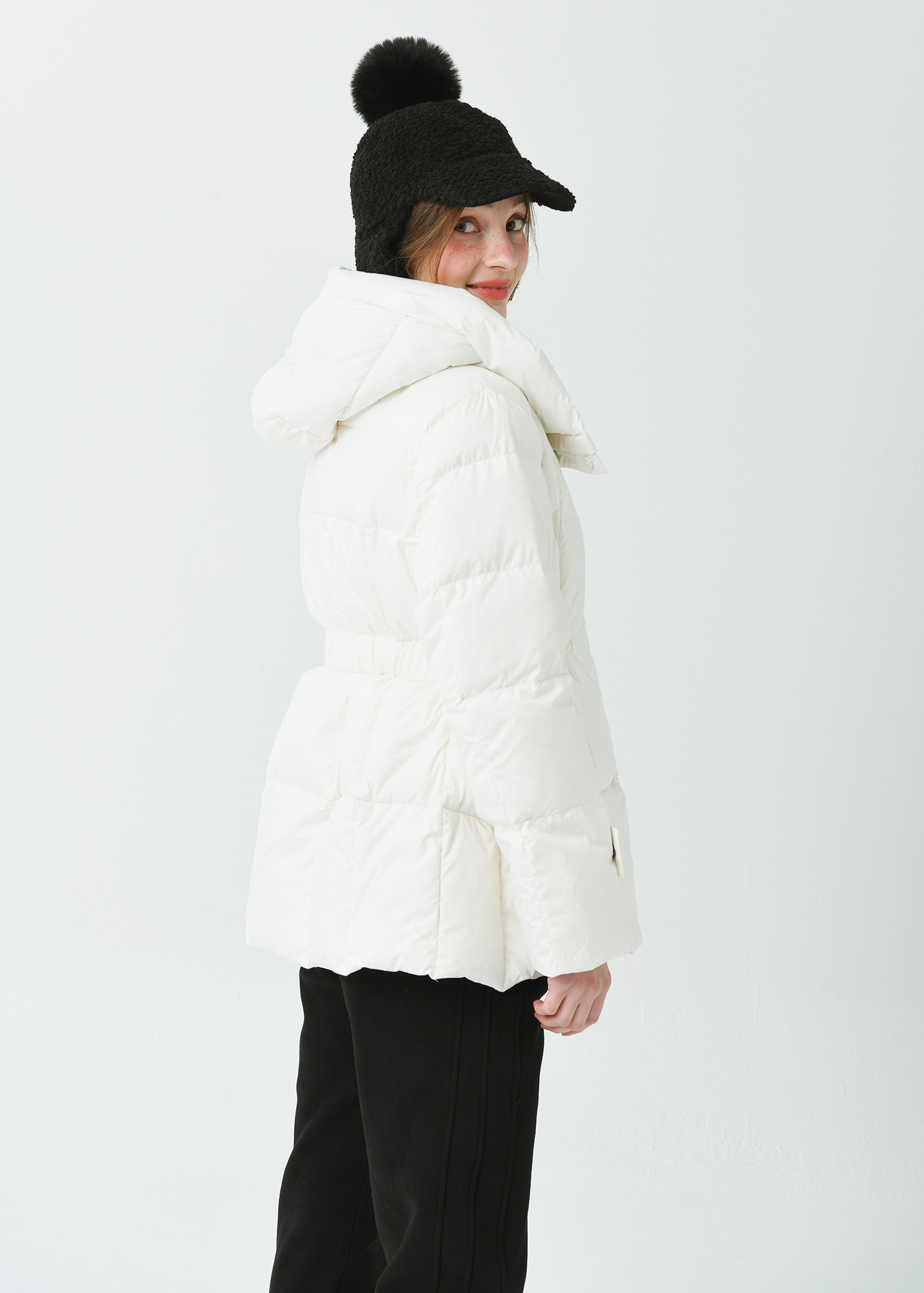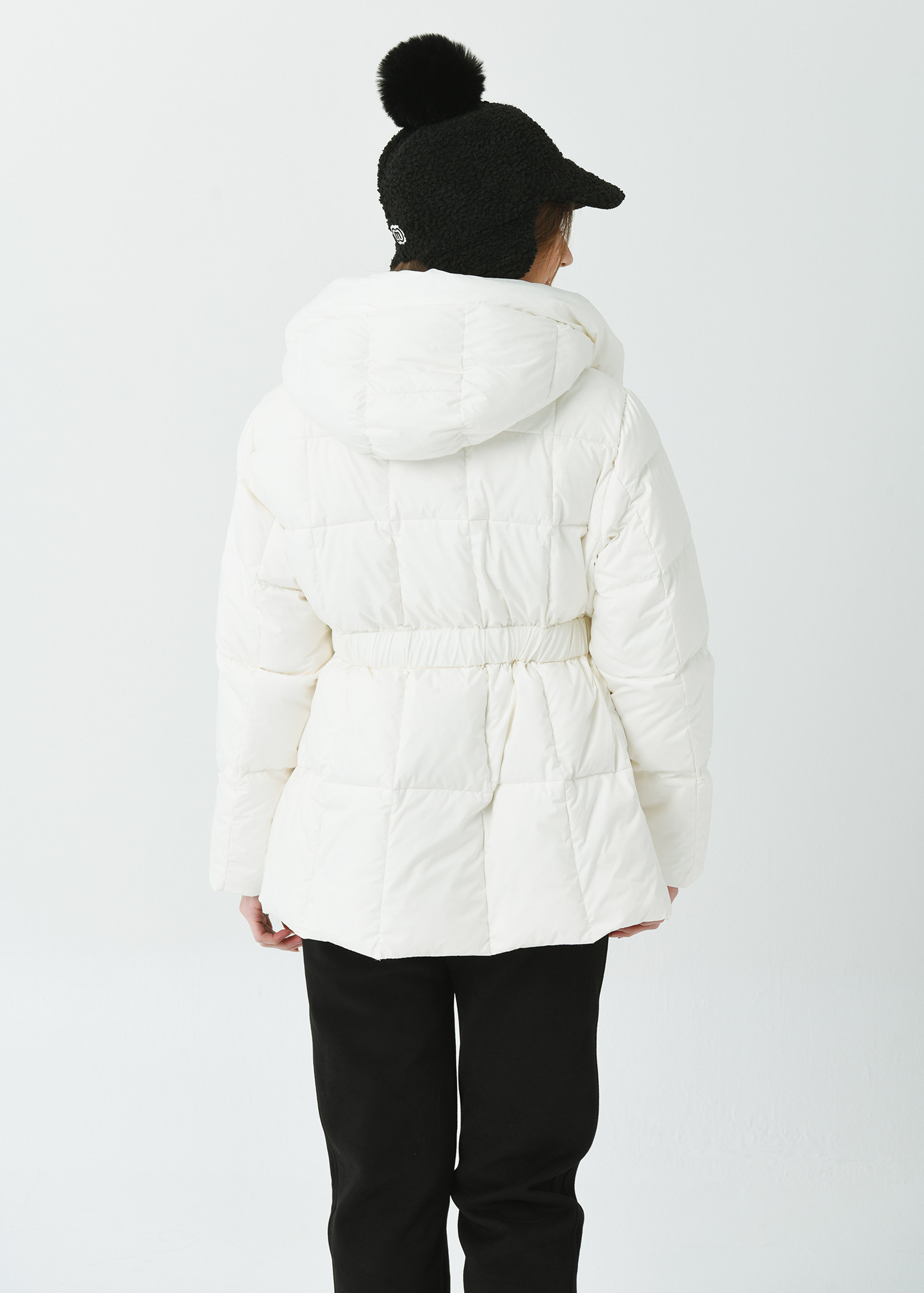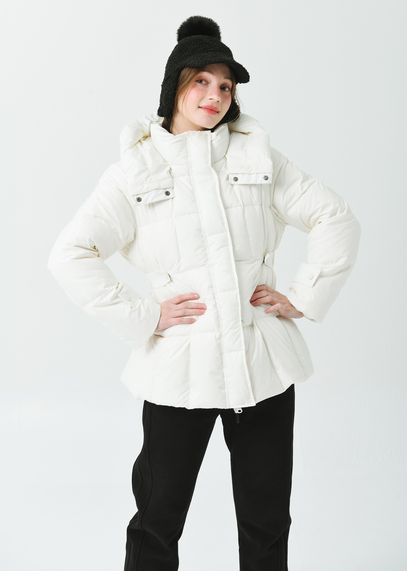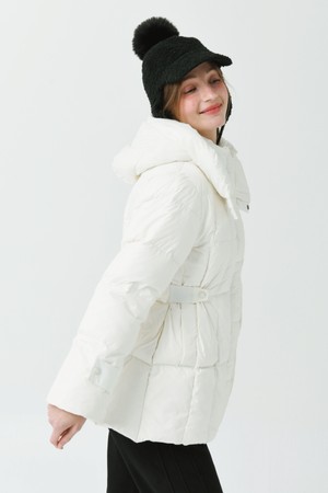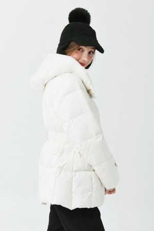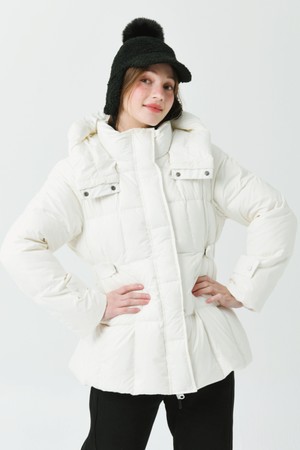 25FW 허리 밴딩 조리개 덕 다운 루즈 핏 아이보리 오버힙 쟈켓