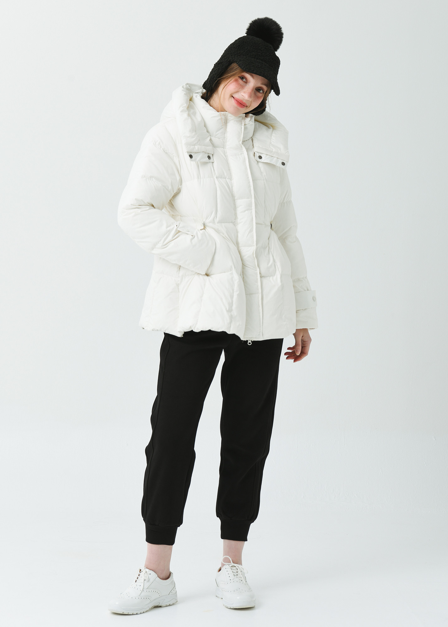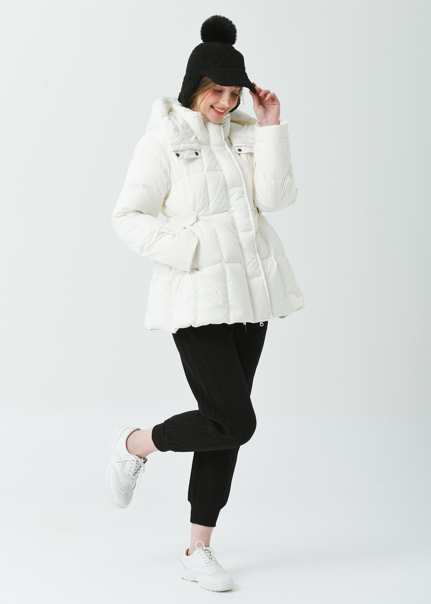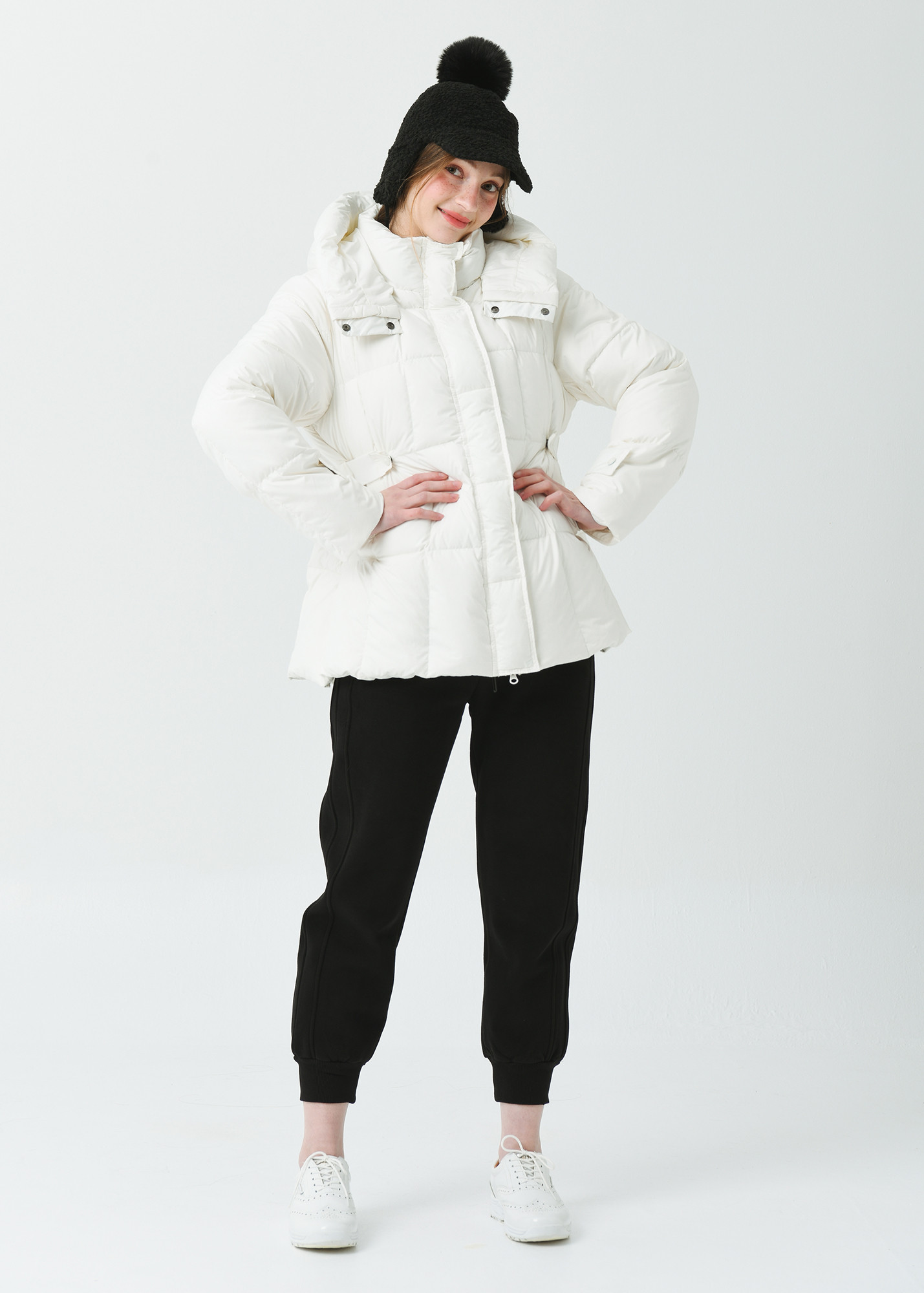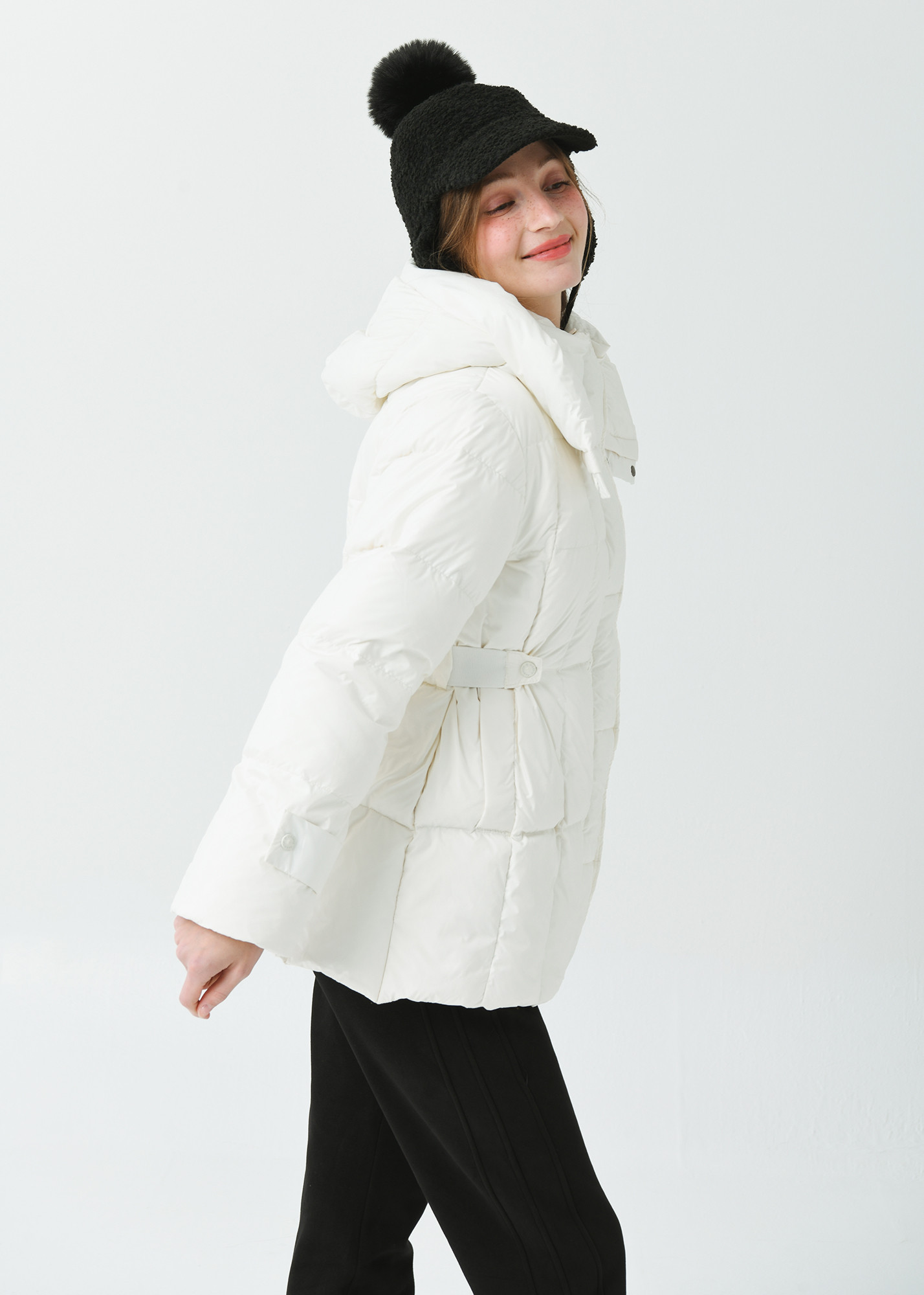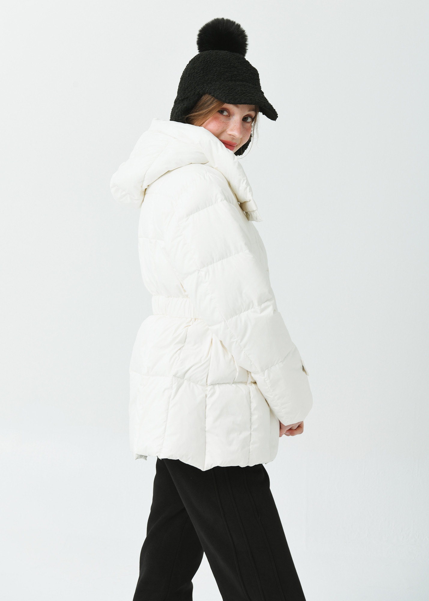 25FW 허리 밴딩 조리개 덕 다운 루즈 핏 아이보리 오버힙 쟈켓