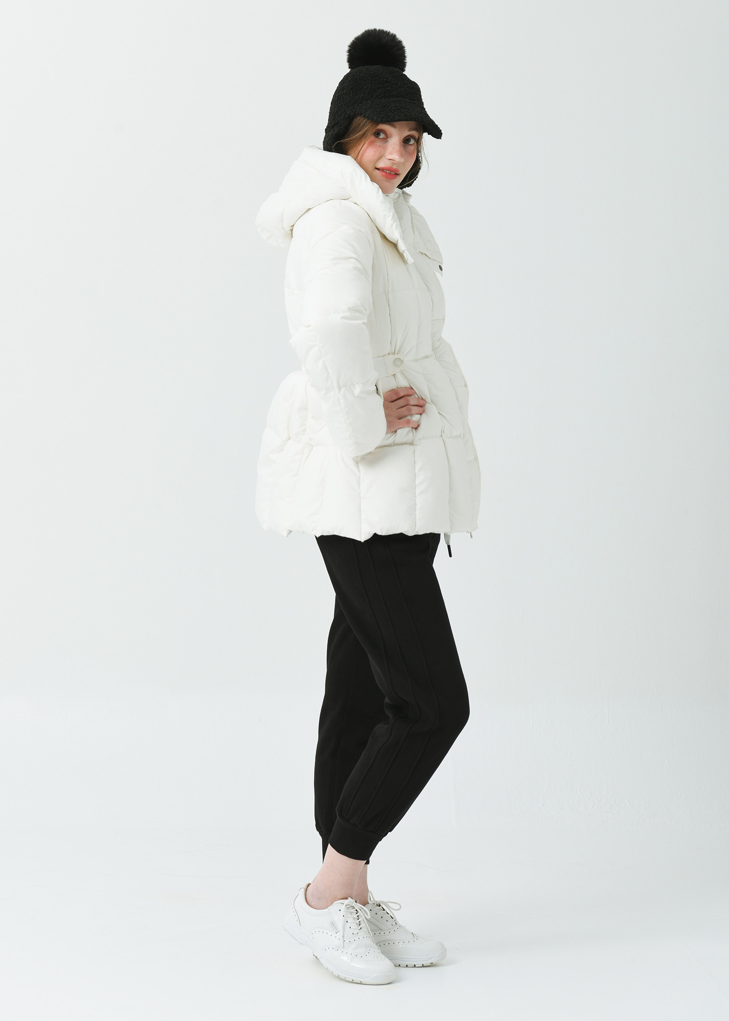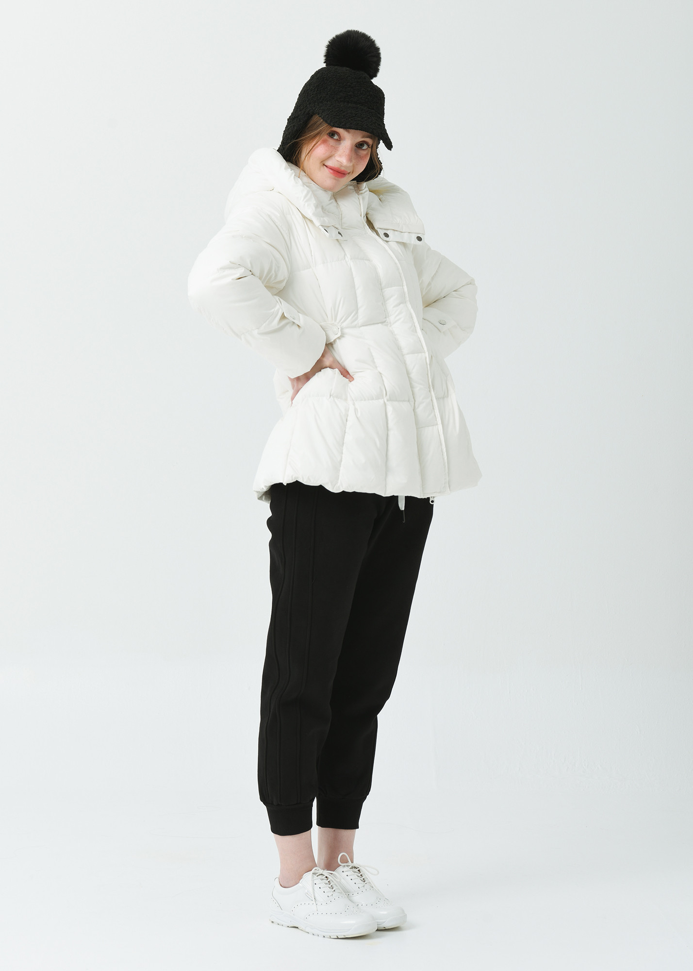 방한용으로도 좋으며, 허리 부분의 사이즈 조절이 가능한 밴딩이 다양한 실루엣 연출이