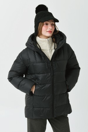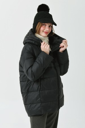 후드 아노락 경량 덕 다운 블랙 오버 힙 쟈켓